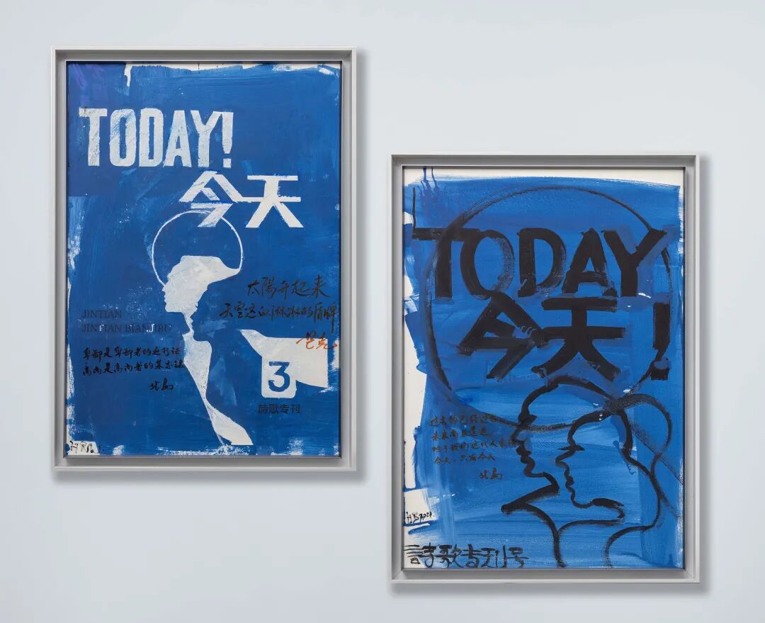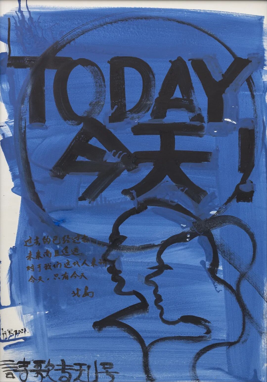 另一件则是黄锐对《今天》经典封面的艺术变形;而北岛附上的,正是他1978年在《今天》创刊号《致读者》一文中说到的:“过去的已经过去,未来尚且遥远,对于我们这代人来讲,今天,只有今天。”这曾是北岛对于《今天》刊名的诠释,但将它放在当下语境,依然成立!《今天》与今天,左右两幅画面既呼应,又构成强烈的视觉对比。既是对历史的回望,也是对当下的叙事,是昨日与今朝的时代镜像。作为建国后第一本民间文学刊物,《今天》的出现与存在近乎于一个奇迹。虽然它只抒写了一个短暂的未完成的篇章,但《今天》的诗歌与诗人们,最终被当代文学史所接纳。对于那些曾经参与其中的作者、编辑部成员、志愿者、读者们而言,《今天》不仅仅属于历史,也属于同一时空下,他们各自交汇的命运所释放出来的光芒。