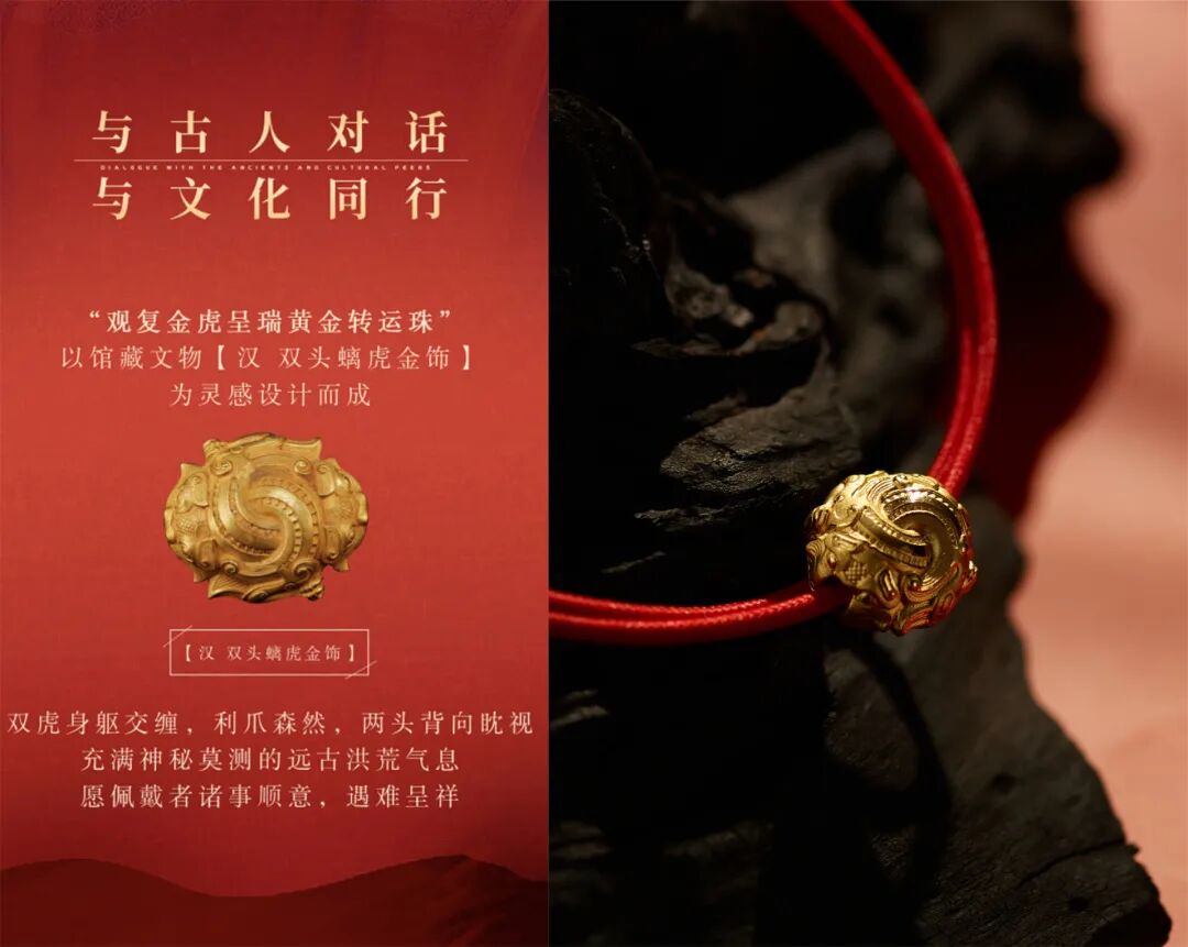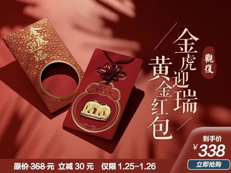 观复博物馆以馆藏【战国 金 虎形饰】为蓝本,创制了这款“金虎迎瑞”黄金红包▼