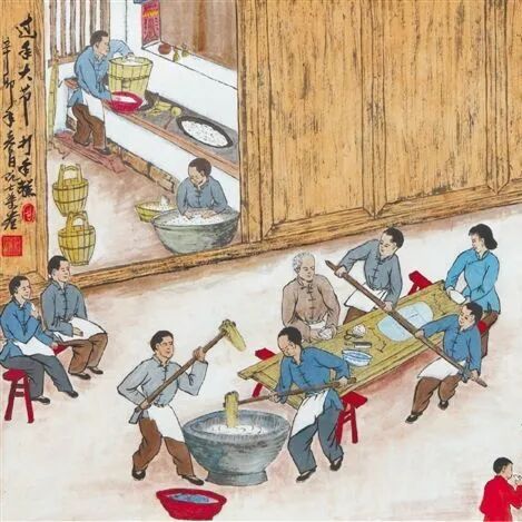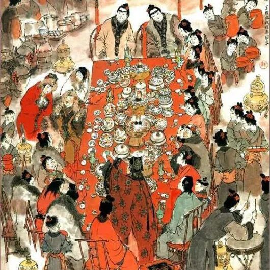 而过年对于古人来说是一年中的头等大事,通常要从腊月初八就开始忙活,一直到正月十五才能罢休。吃的、用的、穿的、戴的、耍的、供的、干的、鲜的、生的、熟的……凡是过年买的货都叫年货。年货中的“吃”最为重要,其次才是祭、穿、玩。所以,民间便流传了这样的顺口溜: