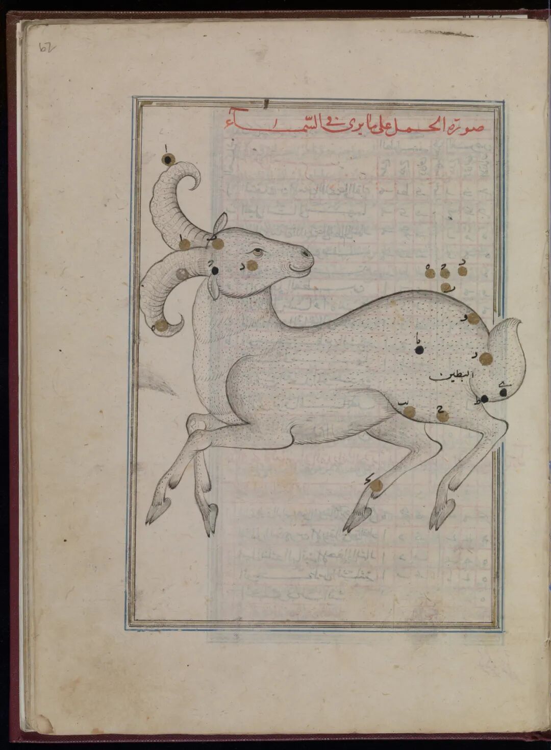 虚极子按:画中人都蓄着连鬓胡子,这一点和波斯细密画中男人文弱清秀的形象构成巨大反差。目前已知最古老的阿拉伯语插图手抄本是波斯天文学家阿卜杜勒-拉赫曼·苏菲的著作《恒星之书》。苏菲(903-986年)大致生活在中国的五代时期,在西方他以阿左飞(Azophi)闻名。《恒星之书》完成于964年,许多手稿和译本都有幸留存下来。现存最古老的手稿保存在牛津大学的博德利图书馆,是作者儿子在公元1009年的手抄本;大英图书馆中还有一份13世纪的复制品。这些珍贵的抄本将星座描绘成人物和动物的形象,便于人们记忆复杂的星相系统。![]()