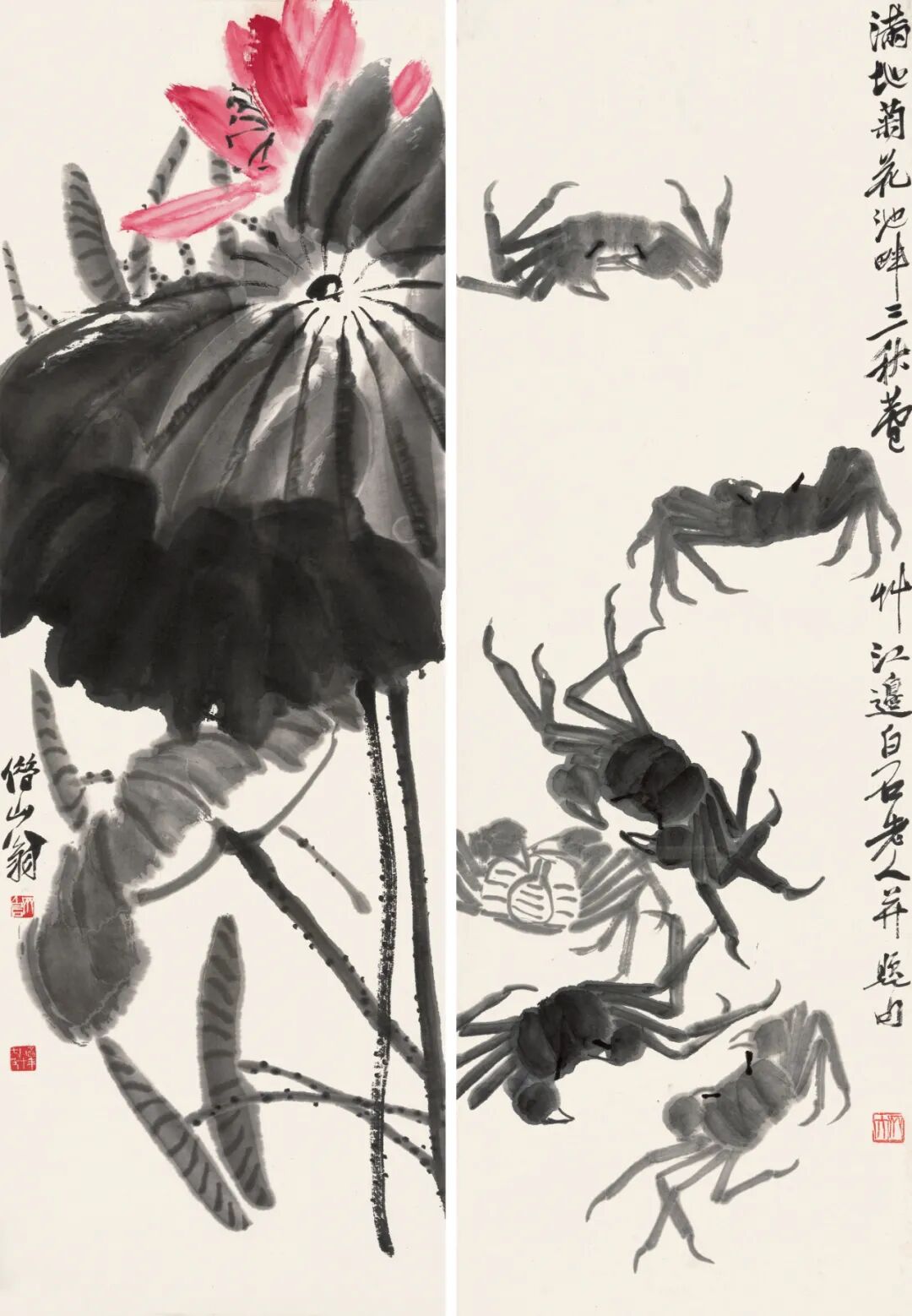 1.满地菊花池畔,三秋芦草江边。白石老人并题句。印文:齐大