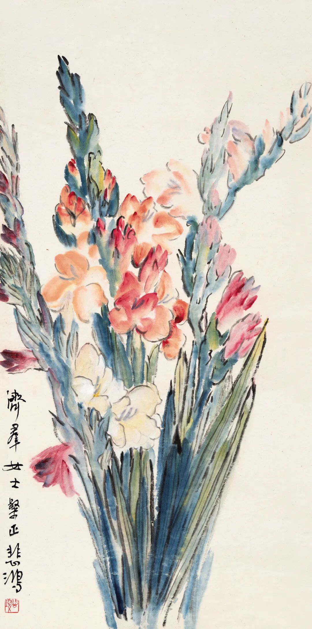 《剑兰图》展现徐悲鸿古为今用、洋为中用的艺术才能。先用传统的白描手法勾出菖蒲花优美的型态,配合近代西方美学之色彩、明暗对比以加强画之立体感,构图清雅,甚有昔日中国文人画之风味。徐悲鸿较少画花卉,此幅鲜见的《剑兰图》不但散发着浓浓的文人气息,也见证了徐氏和舒新城家族的友谊。