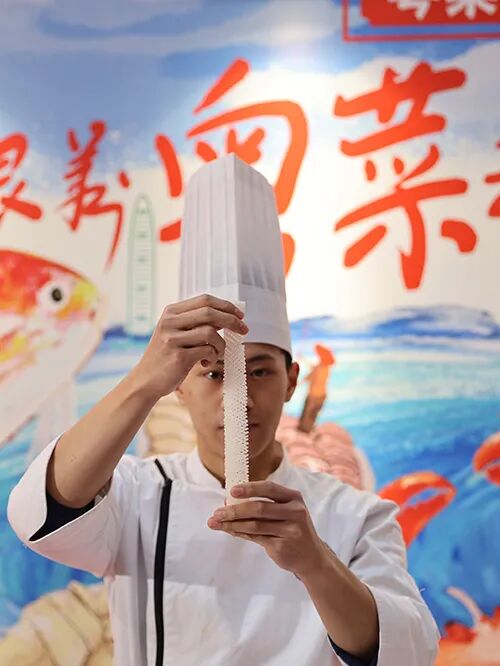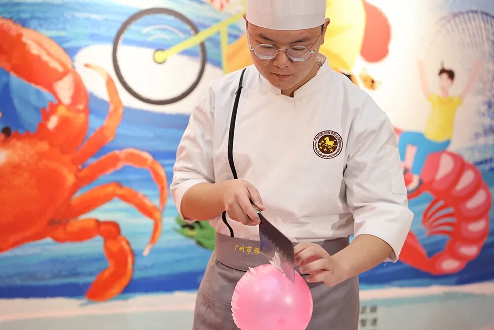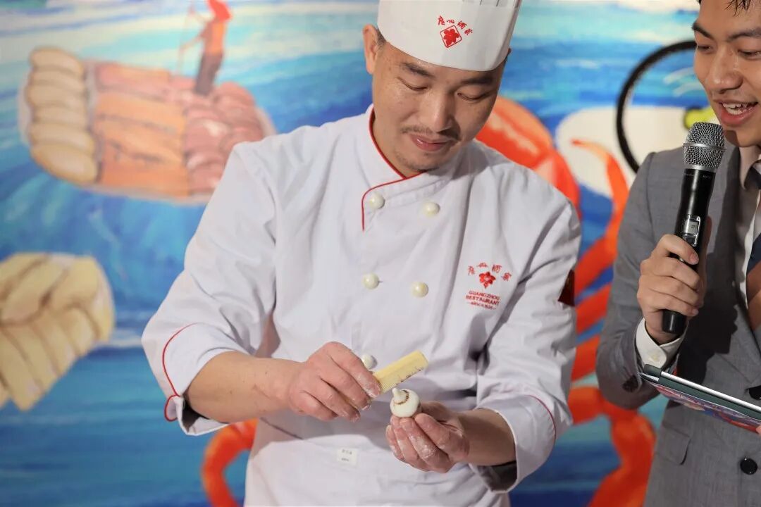 媒体见面会上,广州酒家和广州市旅游商务职业技术学校分别带来了广式点心展示的和精彩的刀工表演。“泮塘五秀”是广州酒家首创的象形点心,以西关名产“五秀”即茨菇、菱角、莲藕、茭笋、马蹄为原型制作而成,自然、生动的形象给食客带来全新的感官体验,是一款颇具代表性的精致美点。每一道粤菜都离不开厨师的刀上工夫。刀尖舞蹈、蒙眼蓑衣刀和丰收渔网三项刀工展示既需要耐心细心,更需要反复练习带来的信心,展现了厨师扎实的基本功。作为粤菜师傅的“黄埔军校”,广州市旅游商务职业技术学校培养了众多具备如此优秀素质的粤菜师傅。