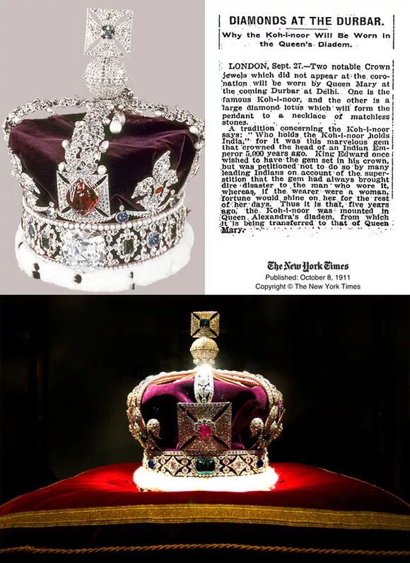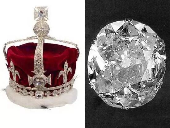她那镶嵌了2200颗钻石的王冠当时不仅镶着那颗重达530克拉的库里南Ⅰ号,还有一颗63.6克拉的库里南Ⅳ号。就连她所戴的项链也坠着一颗22.48克拉的拉合尔钻石。