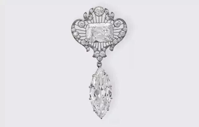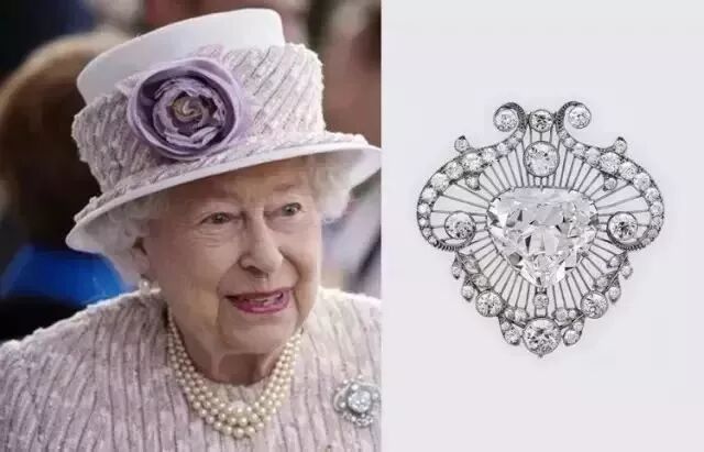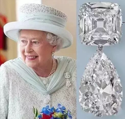 这是女王的另一枚胸针,库里南Ⅵ号为胸针下方的马眼型钻石重11.5克拉,库里南Ⅷ号位胸针上方枕型钻石重6.8克拉,相比上面那几颗好像有点儿小?