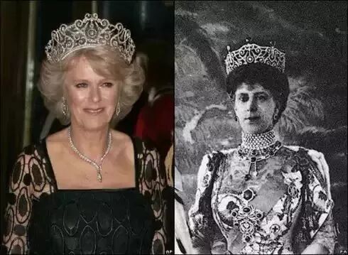 2005年挪威王室来访,卡米拉作为康沃尔公爵夫人,第一次有资格戴上了皇后用的王冠。只不过跟最早时期有了一些变化,上面的硕大的绿宝石角没有了,那颗库利南三也换成了其他的钻石。