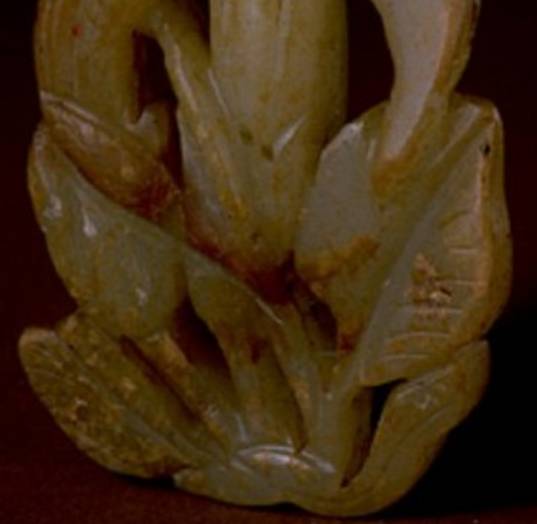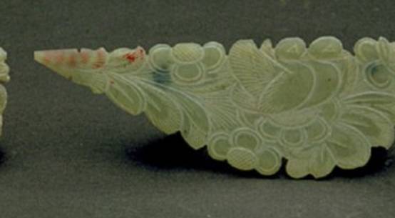 凡是受沁的玉器真品,我们可以从土沁和水沁的部位看出此物当时在墓穴摆放的情形,就是说受沁的部位必定是和玉器在墓葬中的摆放位置及其位置变化有关系。比如一匹玉马,如果是站立状态,那么足部容易受沁,一旦墓穴倒塌,玉马倾倒,那么着地的一面与朝上的一面受沁就会不一样。而作伪的赝品往往根据主观想象在各个部位有意布置沁色,特别是一些低仿品,沁色的位置明显不合理,所以注重沁色位置的研究很有利于真赝的识别,这一点实际上在青铜器和瓷器上都是类似的。
