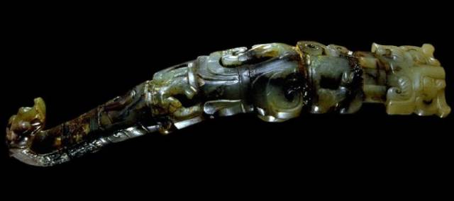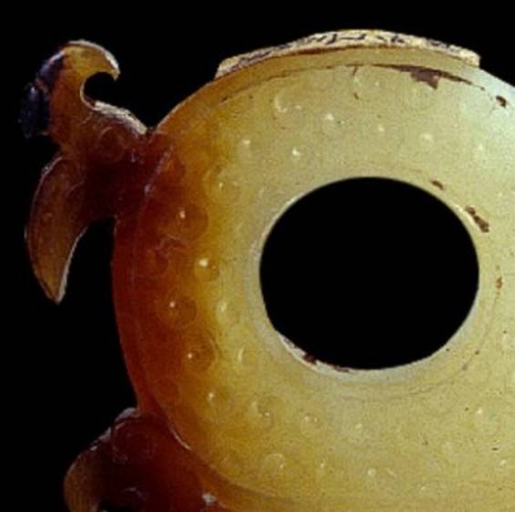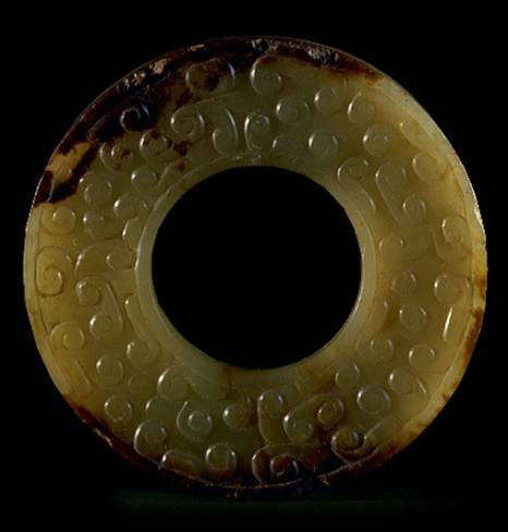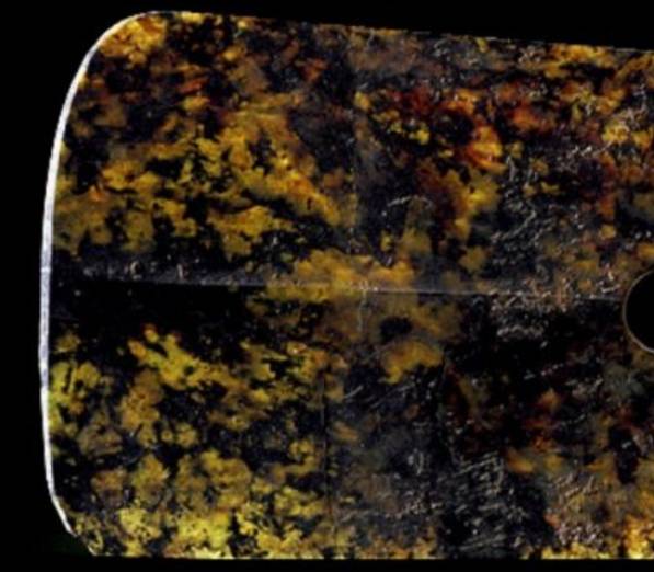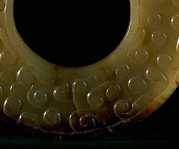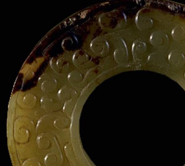 这里的“黄”字统指发生了变色的现象。玉器变色先从渠沟之处变化,色泽变深、变旧。要色变,一般需要百年以上。这种变色即使在明清玉器中也是常见的。