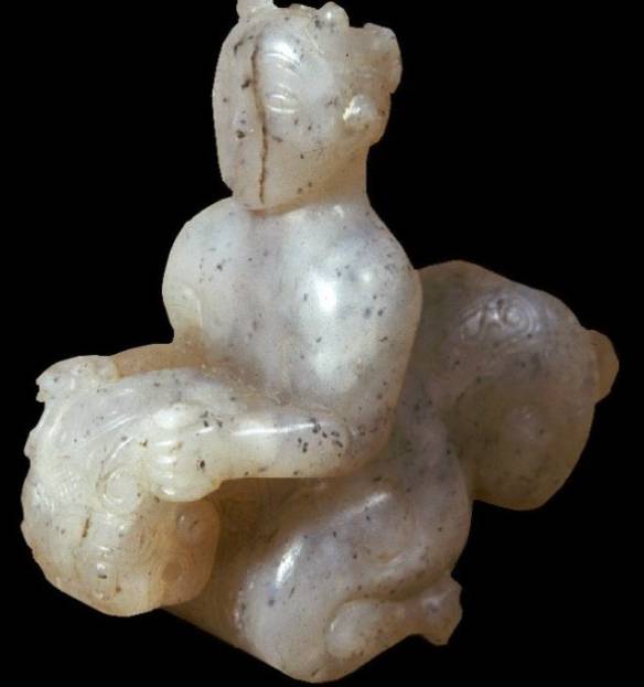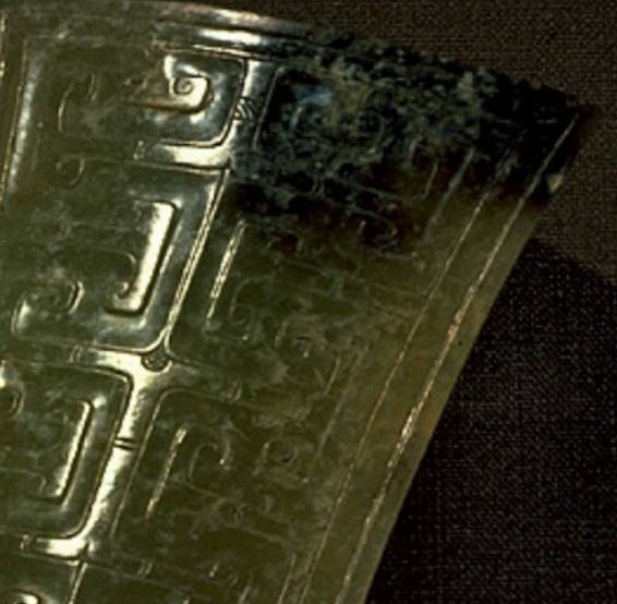 根据水银的这两个特点我认为在密闭的墓室中,又确实放了大量的水银,由此对玉产生作用是完全有可能的。当然这不是我可以做出的定论,但在没有找到其他的解释前,将玉器上的黑色沁色名之为水银沁也没有什么不可以。