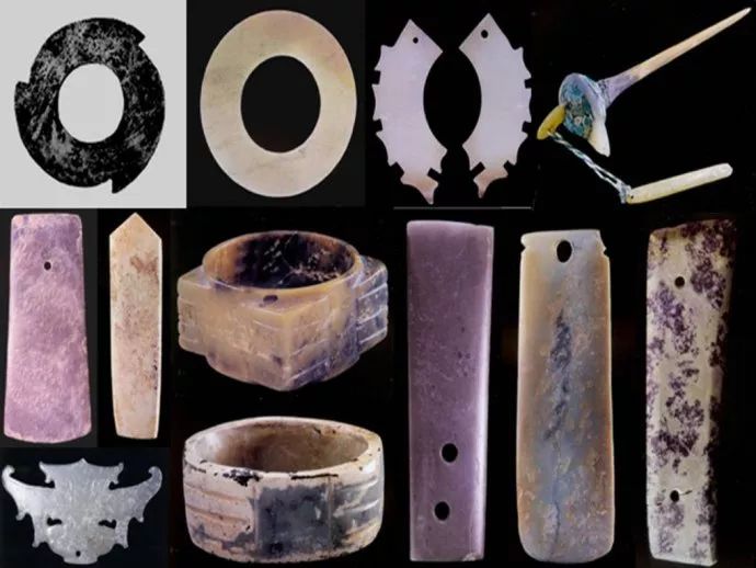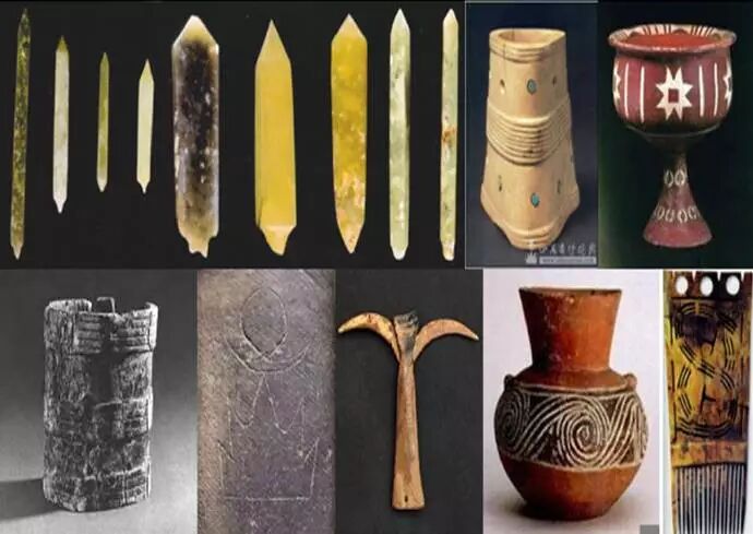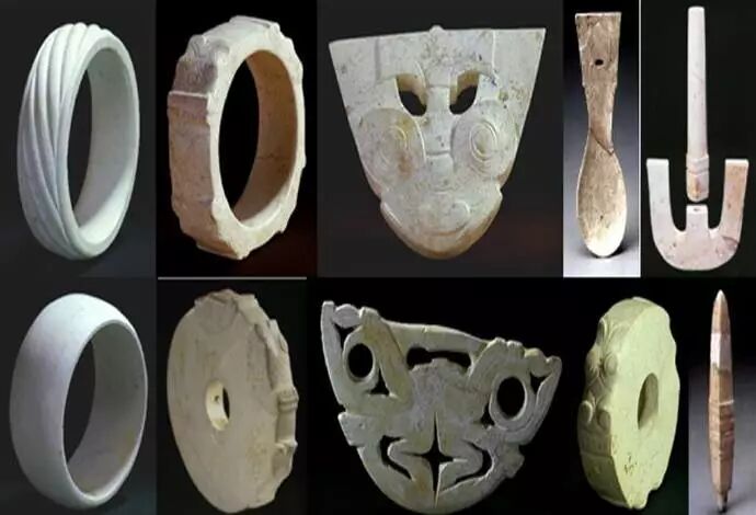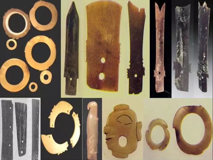 64、龙山时代晚期或夏代初期,陕西省榆林市神木县石峁遗址出土的玉器。在这里我们发现了什么呢?令人激动的是这些玉器我们都似曾相识:玉牙璧(即玉璇玑)和玉牙璋最早出现于山东半岛,但是很明显,石峁的玉牙璋其年代稍晚于山东海隅出现的牙璋,而又早于河南偃师二里头出土的牙璋。玉戈,人们一直以为在二里头出土的玉戈才是中国最早的,岂料更早的玉戈出土于石峁。玉戚,这种以前不知是商代还是夏代才有的玉器出现在石峁,明确地证实了玉戚是夏代初期才开始有的玉器。多少年来,人们一直推论夏民族起源于中原河洛地区,但是石峁的玉器却足以否定这样的推论,如果说二里头遗址是夏代中晚期的遗址,那么早期的夏在哪里?除了石峁,别无其它,因为只有石峁才出土了真正的夏代初期的玉器。