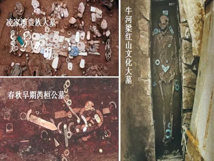 从春秋早期的芮国大墓中,我们看到了玉器殓葬文化的传承——墓中有大量的琮和璜,这些都是古老的南方玉器,而不是北方玉器。而在牛河梁红山文化大墓中,我们又看到了东北贵族集团的阔绰,东北制玉的成本,远远高于南方,这是因为古代红山人有着极高的艺术天分,而且善于圆雕,这在当时的条件下,并不利于使用机械加工,也不便于批量生产,所以,每一块红山玉,都显得非常珍贵。