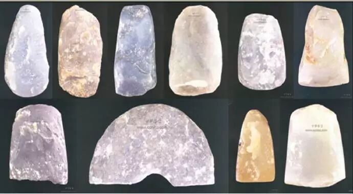 17、若羌文化玉器。若羌文化起源于中国的大西北,在昆仑山脉和阿尔金山北坡,塔里木盆地的东部,若羌文化存续的时间大约在距今5000~4000年前。上图这些玉器以玉斧为主,均出土于著名的若羌楼兰古城。我们可以看到,在中国盛产美玉的地方,5000年前,这里的先民们心目中,可能还没有形成“玉”的概念。这些没有钻孔的玉斧,是再也普通不过的木工工具,先民们可能用它们来制造船只,以便于在塔里木河或者车尔臣河上捕鱼。干燥的塔里木盆地,使得这些玉斧一直保持着它们的本色,而千年风沙的吹蚀,并没有使这些玉斧的表面变得光滑和细腻,总之在那时的塔里木盆地,玉石和普通的石头相比,除了更硬一些之外,并没有太大的差别。随着塔里木盆地的沙漠化,越来越多的人们四散迁徙,一些人可能沿着阿尔金山北坡向东路过敦煌,然后穿过玉门关,顺祁连山东侧而下,便望见了贺兰山东面的黄河。在距今4000年前后,新疆的美玉,随着塔里木人或者是罗布人的东迁,从此名闻天下。于是,一条比丝绸之路还要早2000年的玉石之路,由此而开通了。故事讲到这里,凡是爱玉的朋友们应该明白了:如果有人向你推介一万年以前,或者是五千年以前来自新疆或者蒙古高原的美玉,这些玉上面全都雕刻着精美的图案,还有各种稀奇古怪的文字,甚至还有玉制的“识字课本”,那么你就应该小心上当了,一切虚构的“历史”、虚构的高度发达的“文明”和所谓的西北“阳刻文字”,全都不过是假古董商骗人的把戏。中华文明博大精深,有考有据,根本无须做假,自然也能够屹立于东方。
