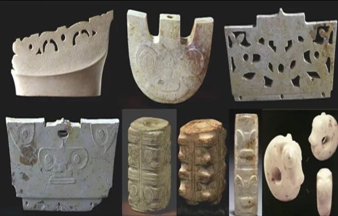 夏后氏起源于山东半岛东南部的海滨,距今4300年前,有崇氏鲧的部落在山东因治水获罪,崇伯鲧被当时的帝尧指使南方祝融部杀害,于是有崇氏余部开始了向西北的逃亡。神木石峁靠近内蒙古鄂尔多斯,那里十分接近东北红山文化的势力范围,但是在神木竟然没有出现一片红山文化玉器,这十分让人惊讶。神木石峁出土的玉器大部分是源于山东半岛龙山时代的玉器,并且这些玉器中的玉戈、玉戚、玉牙璋和玉柄形器等填补了山东龙山文化玉器与河南偃师二里头文化之间的空白,否则二里文化玉器几乎成为无本之木。