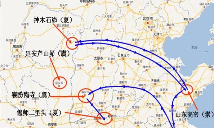 如此则夏民族的来历由此而变得十分的清晰:距今4300年以前,他们先是山东人,为禺族或者崇族,后经河北省北部、山西省北部向西迁移至陕北。距今4000年前,夏部落在吸收了北方草原民族的营养之后变得强大起来,于是由原来西迁的路线重返山东。他们是来治水还是来复仇至今已无人知晓。