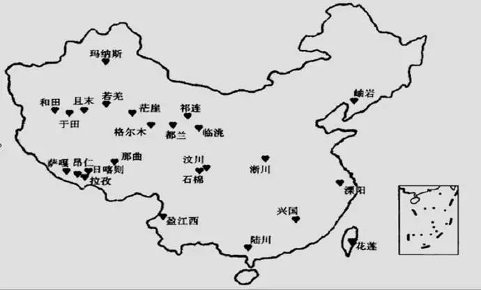 13、中国玉石资源分布图。从这里我们可以看到,中国的玉石资源主要分布在西部的高原地区,所以玉石是大陆飘移和造山运动的产物。但是在5000年以前,中国的玉文化却是起源并且繁荣于中国的东部的平原。玉器本身是农业文明高度发达的产物,没有充足的粮食储备,就养不起众多的玉器匠人,但是同时,如果没有就近的玉矿可以开采,也就难以形成发达的制玉业。人们常说,东北红山文化玉料主要是岫岩玉,但是在燕山的北侧,努鲁儿虎山也有与岫岩玉相类似的矿石。而且良渚玉器、凌家滩玉器的玉料,也被证明来自其附近不远的山区。所以说,最少在5000年前,如果说在中国东部发现了大量使用新疆和田玉制作的“高古玉器”,那不是神话,便一定是假古董商编造的谎言。