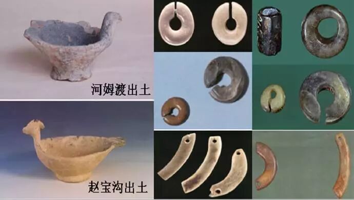 7、河姆渡文化遗址群,位于浙江省中部的宁绍平原,因其首先发现于浙江省余姚市河姆渡镇金吾庙村而得名。她最深的第四文化层,距今约7000年。在河姆渡遗址的四个文化层中,都出土了玉玦或者石玦。古老的玉玦出现在河姆渡,具有划时代的历史意义,因为它从此播下了南方玉器文明的种子。兴隆洼在东北,河姆渡在江南,难道这两个史前部落的先民们同时发明了在耳朵上穿孔佩带玉玦的“游戏”吗?这不太可能。还有这两个遗址出土的鸟形陶盏,又几乎是一模一样。这就是说,至少在7000年前,有人从东北平原,越过燕山,或者是顺着辽河南下,然后沿着渤海、黄海和东海海岸,来到了气侯温暖的南方。一千年后,这批北方移民又慢慢地变成了南方民族的一份子。