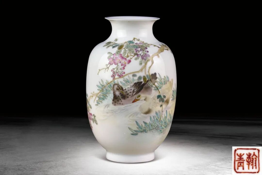 22 民國 余翰青繪粉彩花鳥紋瓶