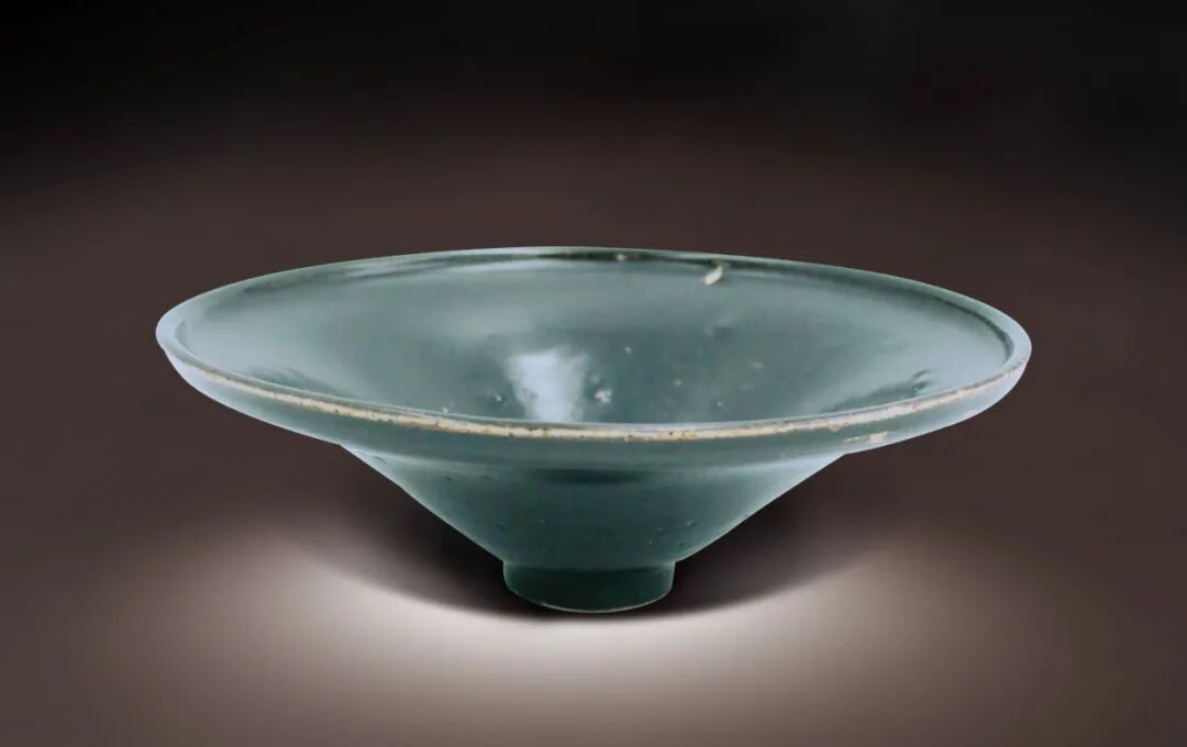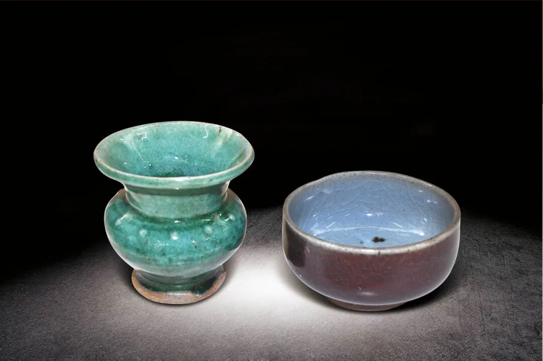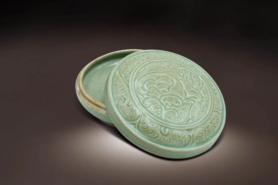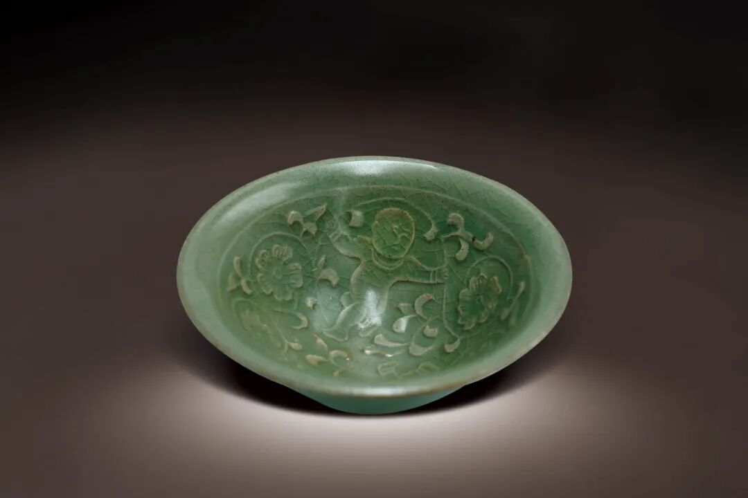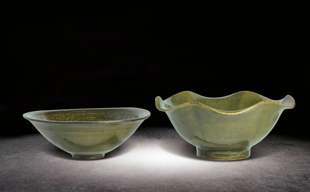 39 明 青釉荷葉碗、青釉印花碗兩件