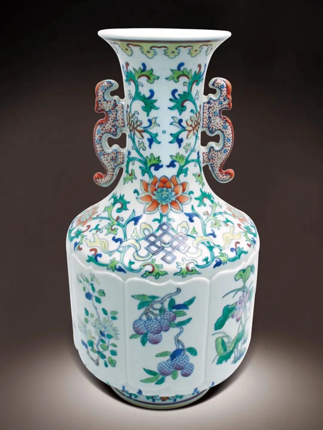 5 民國 粉彩雙耳瑞獸蒜頭瓶