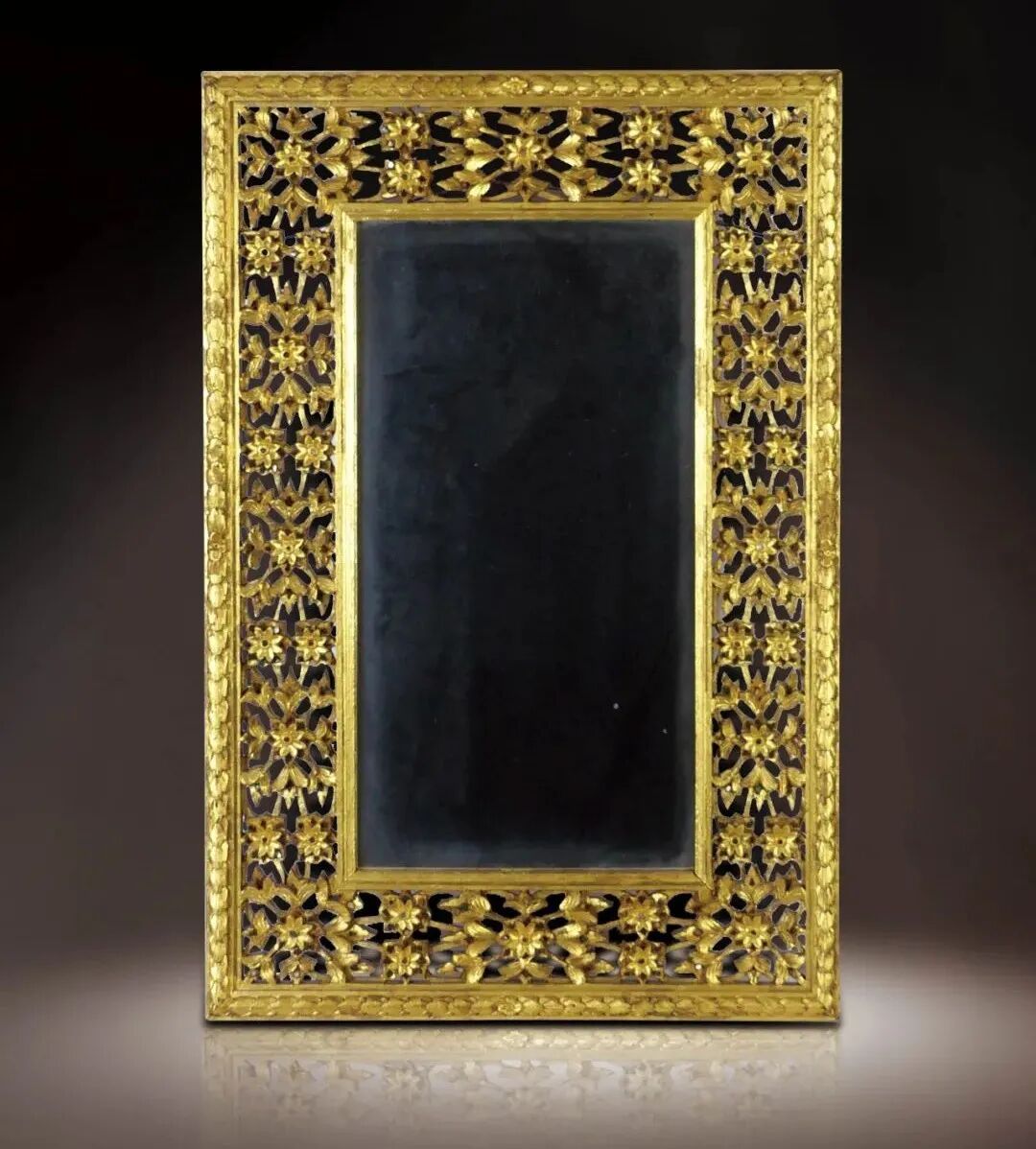 212 十九世紀 鏤雕繁花金漆掛鏡