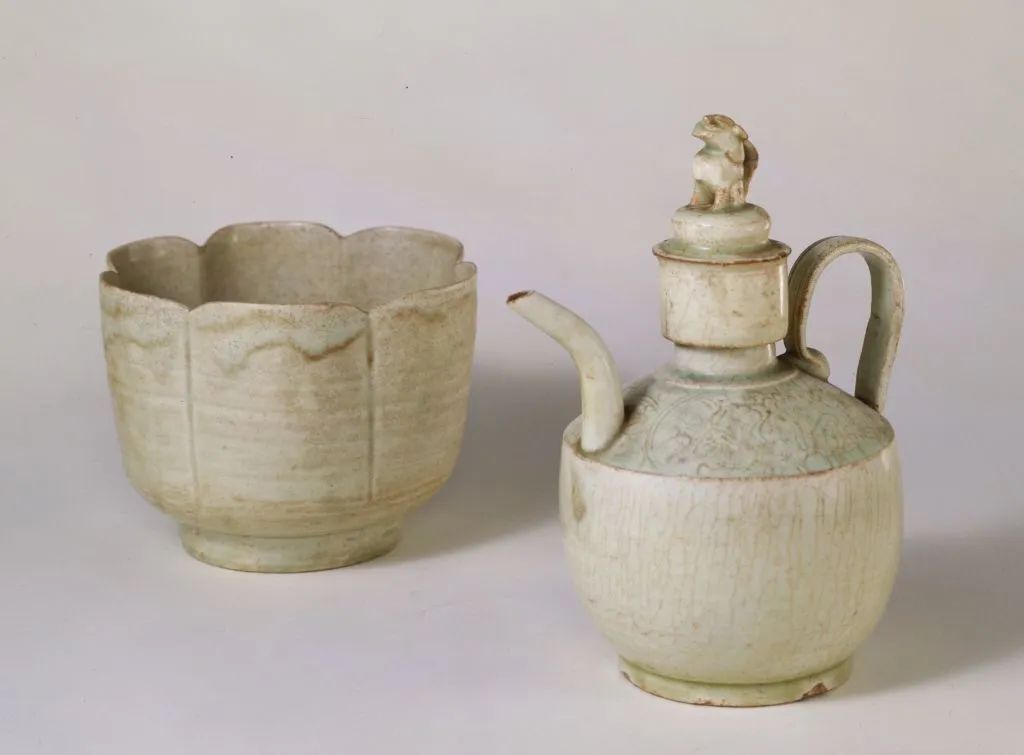 景德镇窑位于江西景德镇,创烧于五代,主要烧白瓷与青瓷。宋代该窑的制瓷技术更趋成熟,规模与产品质量有了很大的发展与提高,元明两代不断出现创新产品,成为全国的制瓷中心。青白瓷,因釉色介于青白之间,白中闪青,青中闪白,故名,是景德镇湖田窑在北宋初、中期独创的釉色品种。因青白釉的釉质中含有微量的铁质,釉色白中泛青,釉层细薄晶莹,具有温润如玉的艺术效果,成为南方青白瓷中的一枝奇葩。江西九江北宋咸平三年(1000年)纪年墓出土的青白釉钵是目前所知最早的青白瓷品,因其质感如青白玉,胎质细洁,釉色青莹,光照见影,故晚清以后又称之为“影青”。南宋词人李清照《醉花荫》中有“玉枕纱厨”之词句,“玉枕”即指色质如青玉一样的青白瓷枕。