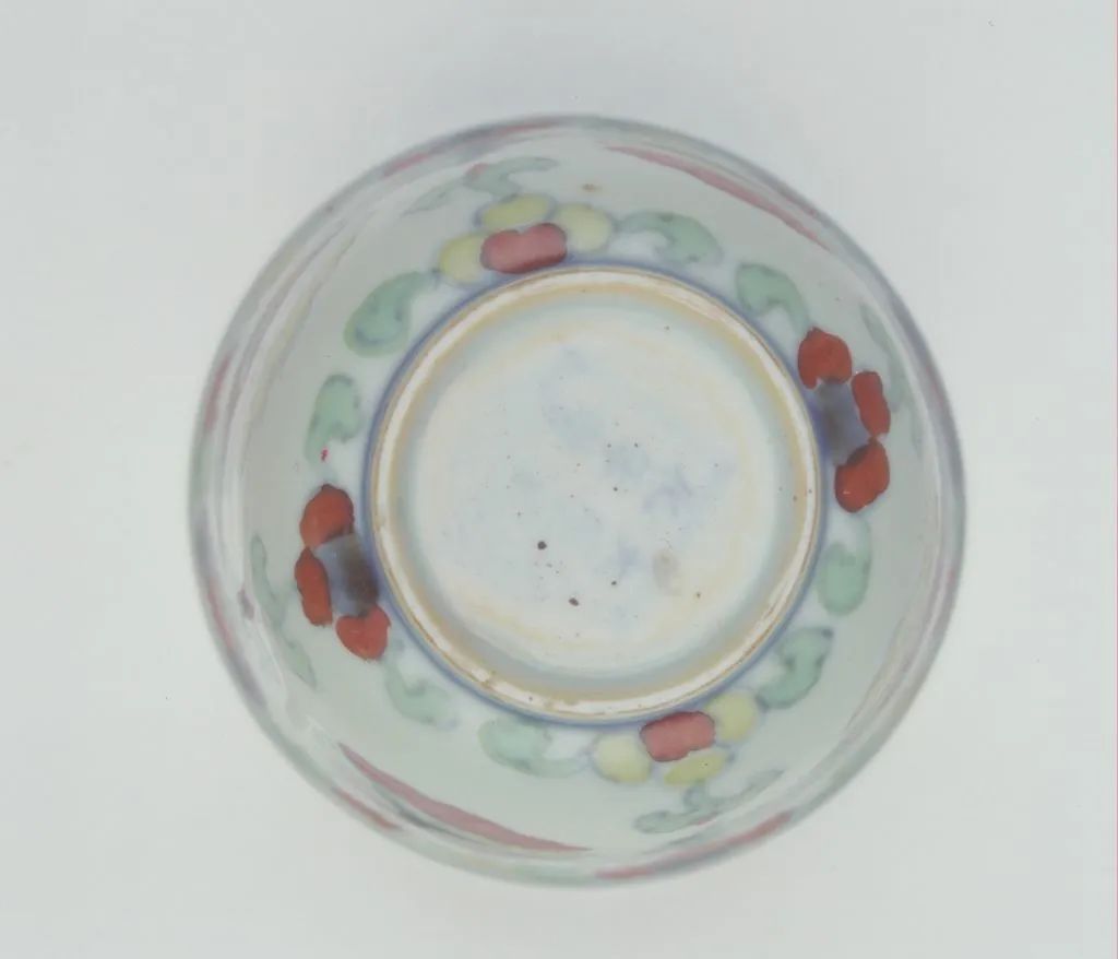 斗彩鸡缸杯,明成化,高3.4厘米,口径8.3厘米,足径4.3厘米。