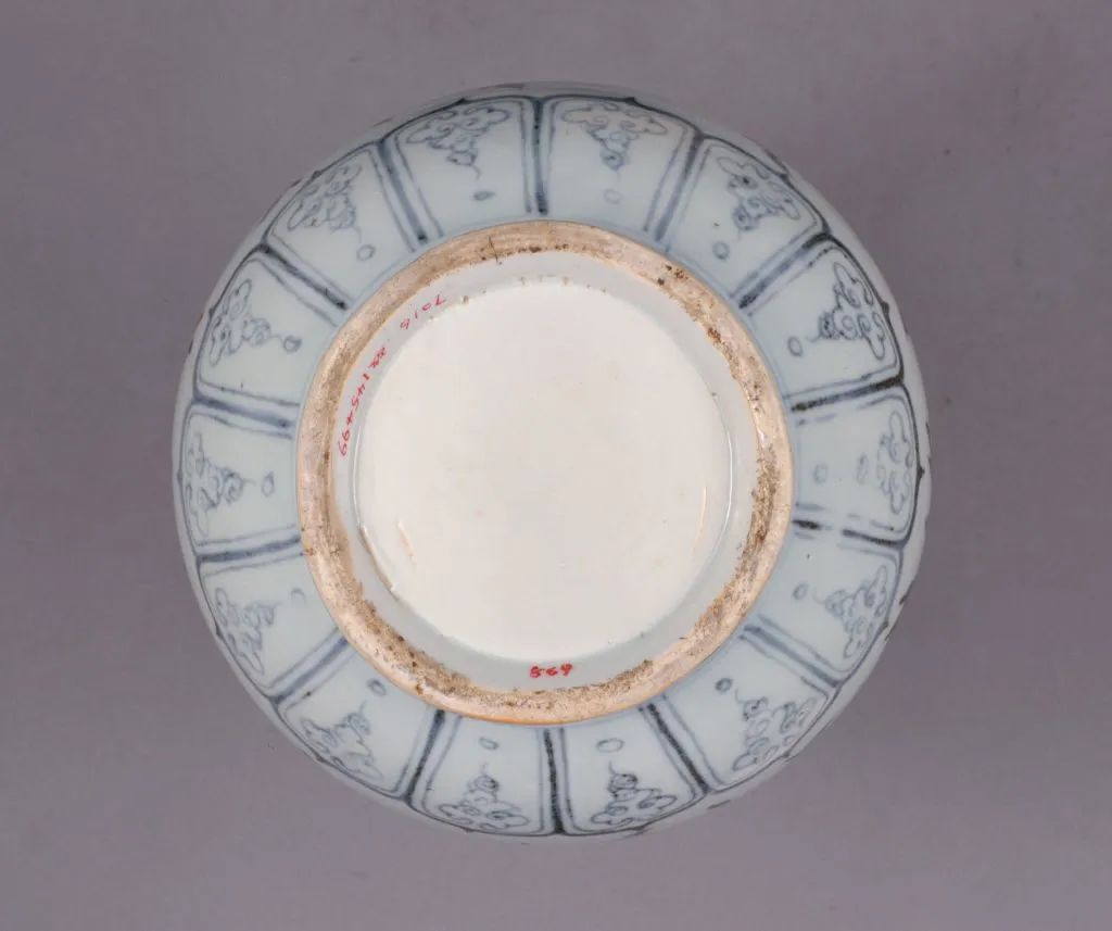 此器造型古朴庄重,胎体坚致,画风豪放,青花呈色蓝中泛灰,代表了这一时期的艺术风格。