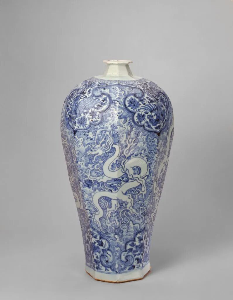 青花海水白龙纹八方梅瓶,高46.1厘米,口径6.2厘米,足径13.4厘米。