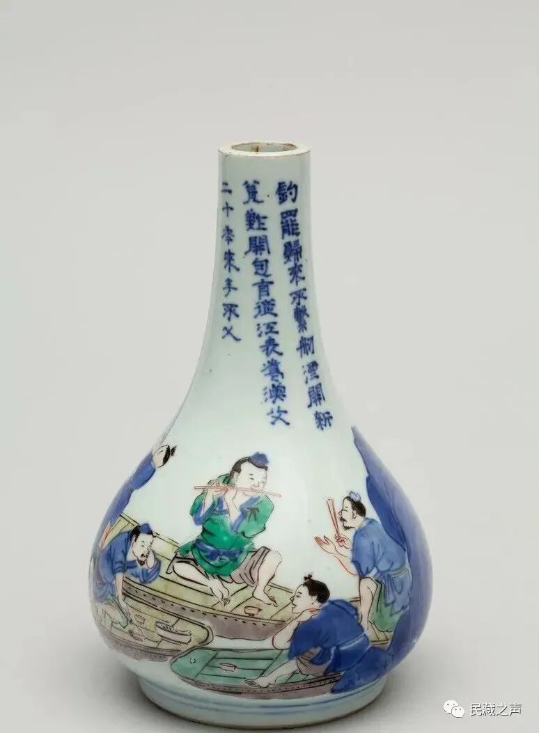 今天大量的传世和出土的明清斗彩瓷器摆在我们面前,为我们深入研究斗彩瓷器创造了非常有利的条件。那么究竟什么是斗彩,它与青花五彩有什么区别呢?应该说明代景德镇烧造的彩瓷品种繁多,《南窑笔记》的作者当时在雍正乾隆时期已经按照彩绘工艺从中划分出斗彩、填彩、五彩三种,在当时的情况下已经属于难能可贵了,也为人们进一步研究彩瓷奠定了基础。但是今天来看《南窑笔记》的划分还是缺乏一定的严密性,主要表现在《南窑笔记》对斗彩的解释是先于坯体上,就是上釉之前这个瓷器成型好了以后,修坯也修好了,用青料画花鸟半体,复入彩料凑其全体。![]()