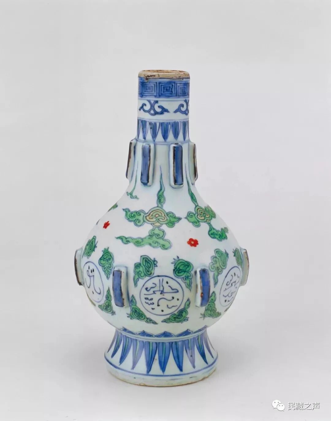 明正德 斗彩阿拉伯文出戟瓶,高23.2cm,口径3.4cm,足径9cm,北京故宫博物院藏