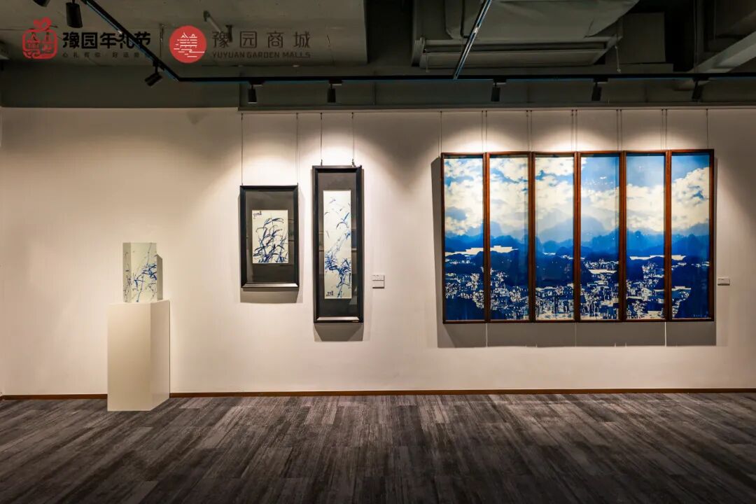 在这场以“青蓝”为名的中国当代青花学术邀请展中,70余件(组)瓷板画、装置、雕塑与陶瓷器物等作品涵盖了山水、花鸟、人物、抽象等题材,它们正在华宝楼三楼的艺术空间热展。