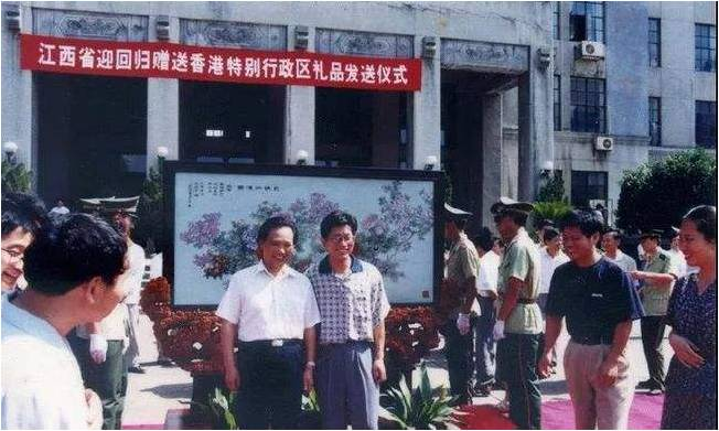 1997年张松茂设计的《紫归牡怀图》,为江西省政府赠送香港特别行政区成立的珍贵礼品。