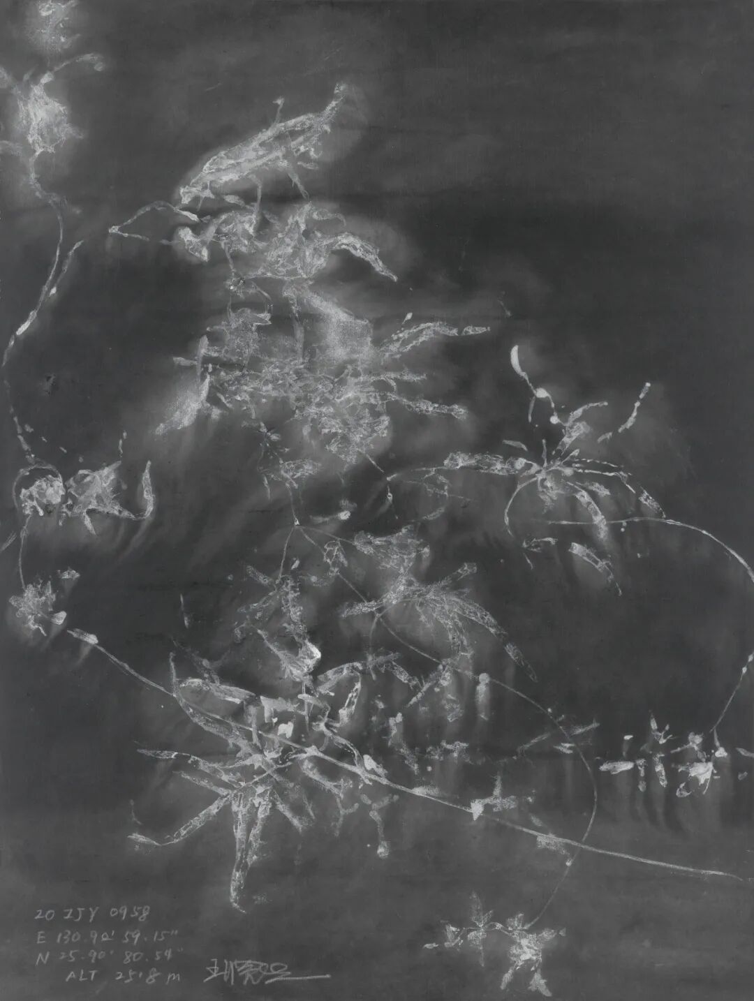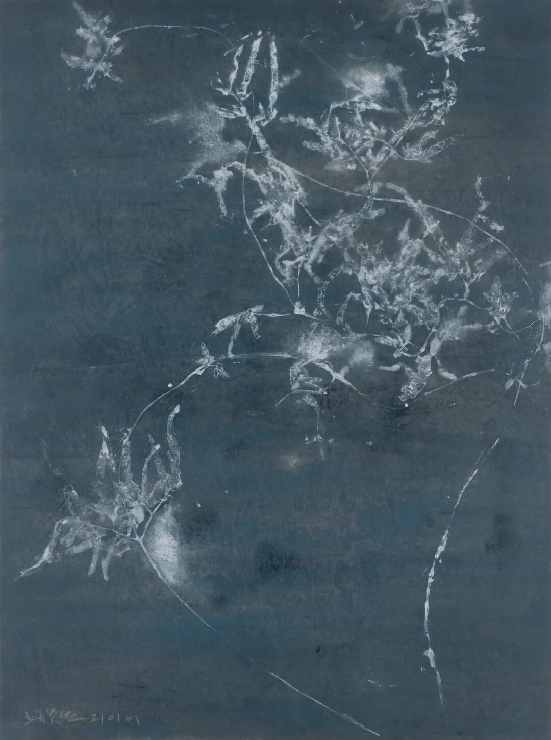 2021年王璜生重返珠江源,延续了当年的做法,采集植物标本,将它们转化为影像、绘画,以古老的水墨与拓印方式,记录下植物的物态与肌理,特殊的创作手法又使图像产生 X 光片的效果,形成更强调艺术家主观意志的植物“景观”,一方面蕴涵着对生命本质探寻追问的含义,也与同样创作于疫情期间的《风之痕》影像系列作品形成互文,形成了历史与当下、理想与现实、生命与记忆的对话。