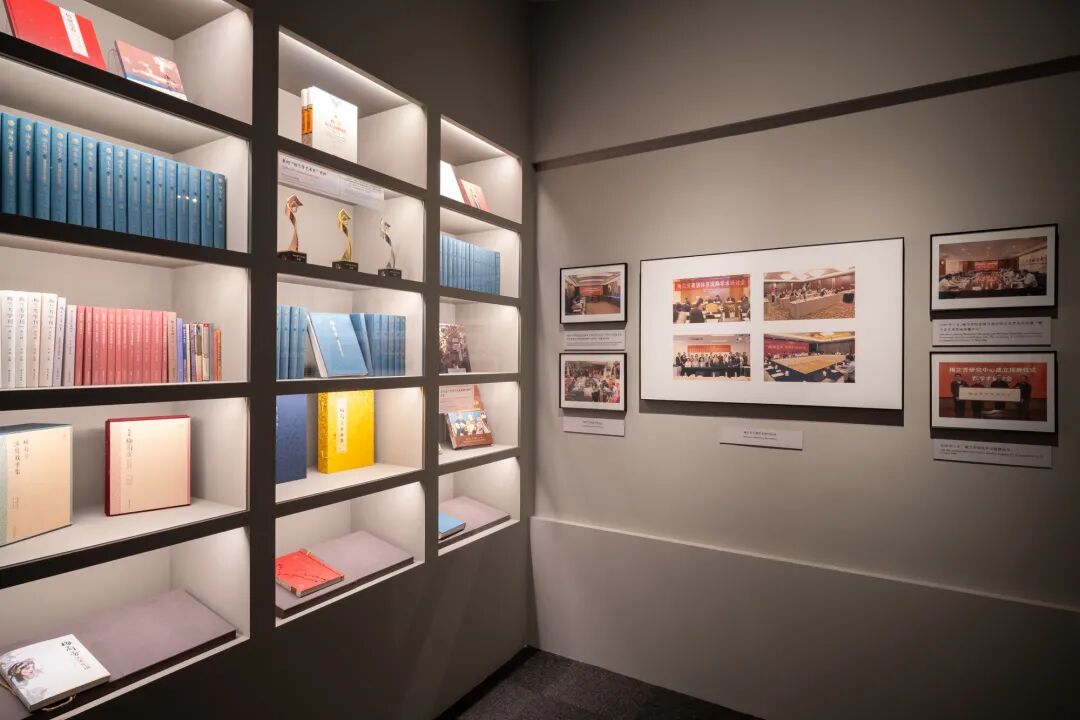展览展出实物近400件(套),图片近600张,包括“群英谱京韵”“梅秀出世家”“梅占百花魁”“梅馨缀玉轩”“梅香传万里”“梅骨傲风雪”“梅报万物春”“梅韵展新声”八个单元。清乾隆五十五年(1790年),为祝贺乾隆皇帝八十大寿,浙江盐务官员和商人将徽班“三庆班”送入京城献艺。此后,徽班相继进京,其中以三庆、四喜、春台、和春最具影响力,并称四大徽班。徽班与当时在京的秦腔、弋腔、汉调、昆曲等相互影响借鉴,在剧目、唱腔、表演诸多方面博采众长,逐渐形成了一个崭新的剧种——京剧。该单元主要呈现京剧的形成时期,可视为整个展览的序篇,以核心展品《同光十三绝》体现梅兰芳祖父梅巧玲所处时代的戏曲发展生态,既是对京剧历史的追溯,也是对梅兰芳家世介绍的铺垫。梅兰芳1894年诞生于北京的一个梨园世家——景龢堂梅氏。九岁(1902年)开始学京剧青衣,十一岁(1904年)登台,1912年,他与“伶界大王”谭鑫培合演《桑园寄子》,在北京的舞台上崭露头角。1913年,他首次赴上海演出,大放异彩,从此“梅兰芳”成为家喻户晓的一个名字。该单元主要表现梅兰芳大师的家世生平,由“梅门四代”、“艺承明师”“鹤鸣初声”“沪上成名”四个部分组成,呈现了梅兰芳的梨园家世、师承及从艺初期的艺术表现。在继承传统的同时,梅兰芳编演了多部时装新戏和古装新戏,对京剧表演、舞台、服饰、容妆、伴奏等方面进行了大胆的改革和创新。经过不断的探索,梅兰芳将京剧旦行表演艺术推向了崭新的高度,并形成了独具特色的表演艺术流派——梅派。该单元主要体现梅兰芳的艺术成长,由“笃学精进”“守正开新”“艺领群芳”三个部分组成。“缀玉轩”是梅兰芳早年居所的雅称,它是一个物质空间,也是一个文化空间,吸引各方英才,切磋琢磨,品艺论道,承载着梅兰芳的意趣,培塑着梅兰芳的精神,成为梅兰芳文化符号。该单元以梅兰芳居所“缀玉轩”为主题,由“居缀玉雅处”“集生活妙趣”“友名贤雅士”“以妙笔绘意”“挥刀剑塑形”五个部分组成。梅兰芳是中国戏曲海外传播的先行者。自1919年首次迈出国门,他先后访日、访美、访苏演出,不为稻粱计,而以弘扬文化重,彰显出其高度的文化自觉。中国戏曲艺术渐被海外戏剧界了解、认知和接纳,以梅兰芳为代表的中国戏曲艺术走出国门,跻身于世界戏剧之林。该单元展现梅兰芳艺术文化的影响与传播,由“文化使者”“两渡东瀛”“访美之旅”“访苏游欧”四个部分组成。1931年“九·一八”事变后,梅兰芳从北平移居上海,他陆续排演了一批抗敌救亡、抵御外侮的戏,唤起民众强烈的爱国热情。1938年梅兰芳避居香港,日本占领香港后,梅兰芳蓄须明志,坚决不登台演出,而绘画成了他那个时期艺术情志的主要寄托。该单元重点呈现梅兰芳的家国情怀,由“演剧醒世”“蓄须明志”“丹青不渝”“艺德留芳”四部分组成。中华人民共和国成立后,梅兰芳以文艺工作者、人民艺术家的新身份,接受党的教育,不断改造自己,认真学习毛泽东《在延安文艺座谈会上的讲话》,文艺观、世界观发生重要变化,政治觉悟不断提升。中华人民共和国成立10周年之际,他光荣地加入了中国共产党,并创排出最后一部代表剧目《穆桂英挂帅》。该单元浓墨重彩地描绘了中华人民共和国成立后,梅兰芳全心全意投入到新中国社会主义文化工作中的事迹,以及党和政府赋予梅兰芳的荣誉,由“新的使命”“踏歌而行”“和平外交”“泰州寻根””“宣誓入党”“再攀高峰”六部分组成。(八)梅韵展新声