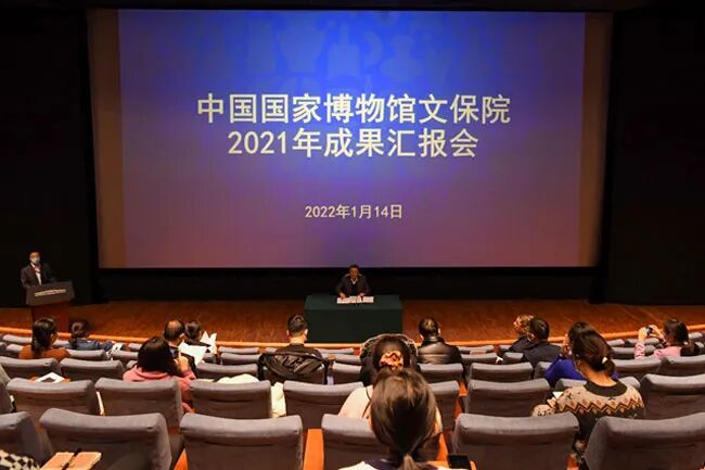 汇报会由三个主题组成,分别是重大政治任务和科研项目、馆内业务汇报和文物保护修复研究。第一部分包括了馆藏中央礼品展前养护、中央工程文物复仿制、驻港部队文物复仿制三个重大政治任务和十三五国家重点研发计划“馆藏脆弱铁质文物劣化机理及保护关键技术研究”重大专项的成果汇报。第二部分由文物保护不同专业方向的相关专家,从馆藏环境的监测与检测、生物病害的保护处理、漆木器文物的修复与复制、古籍文献的保护修复以及藏品检测中色谱技术的应用等几个方面介绍了文保院这一年来开展的相关工作和取得的成果。第三部分是文保院不同专业方向的专家在完成馆内业务工作的同时,开展的专题研究成果汇报。汇报会内容丰富,基本涵盖了国博文保院2021年度进行的文物保护修复和复制项目以及开展的各项专题研究,成果丰硕。