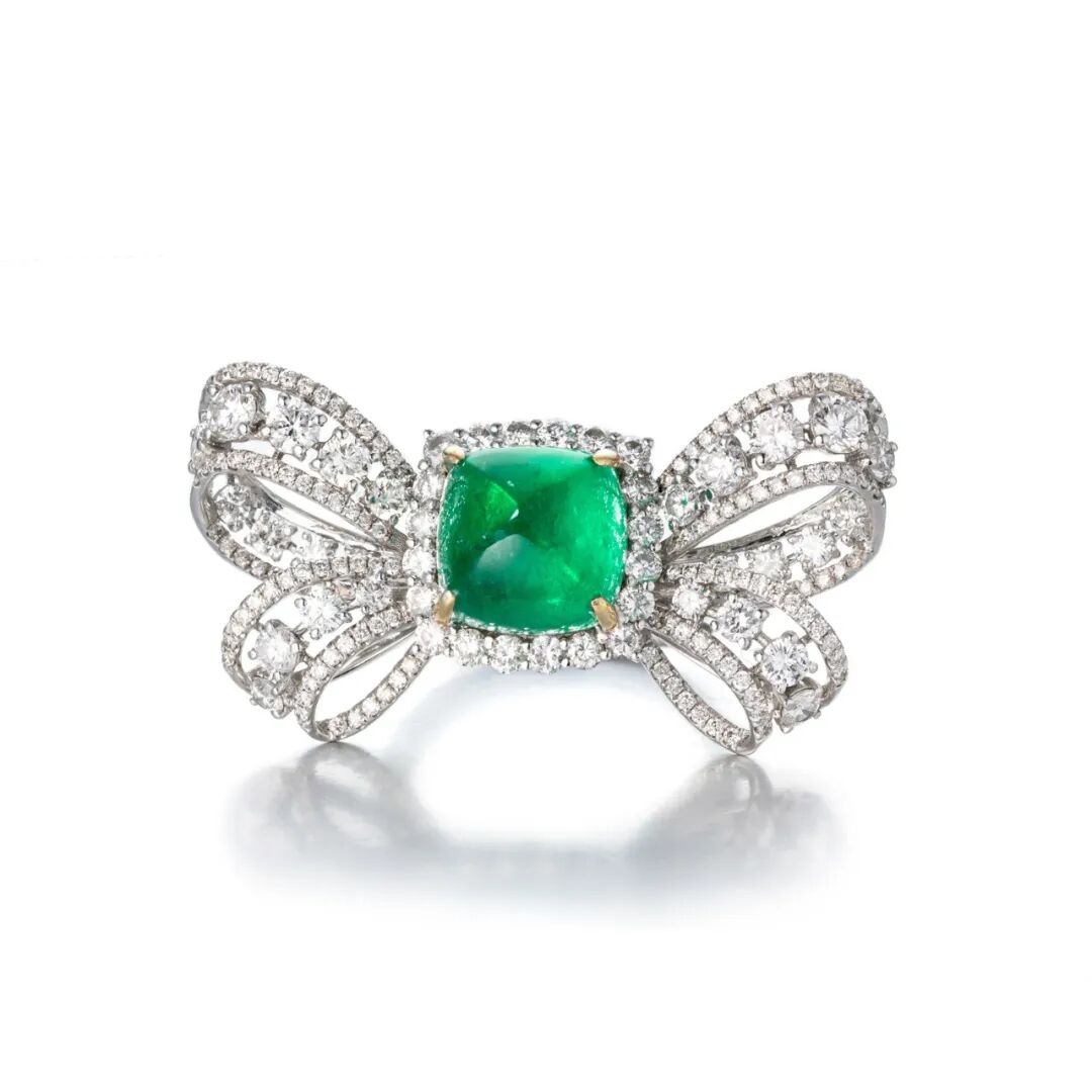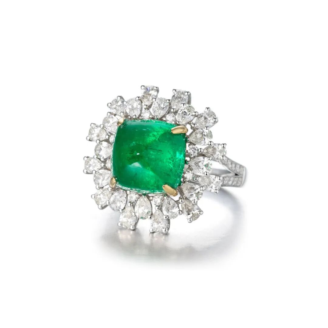 18K金镶祖母绿天然钻石戒指/吊坠两戴
