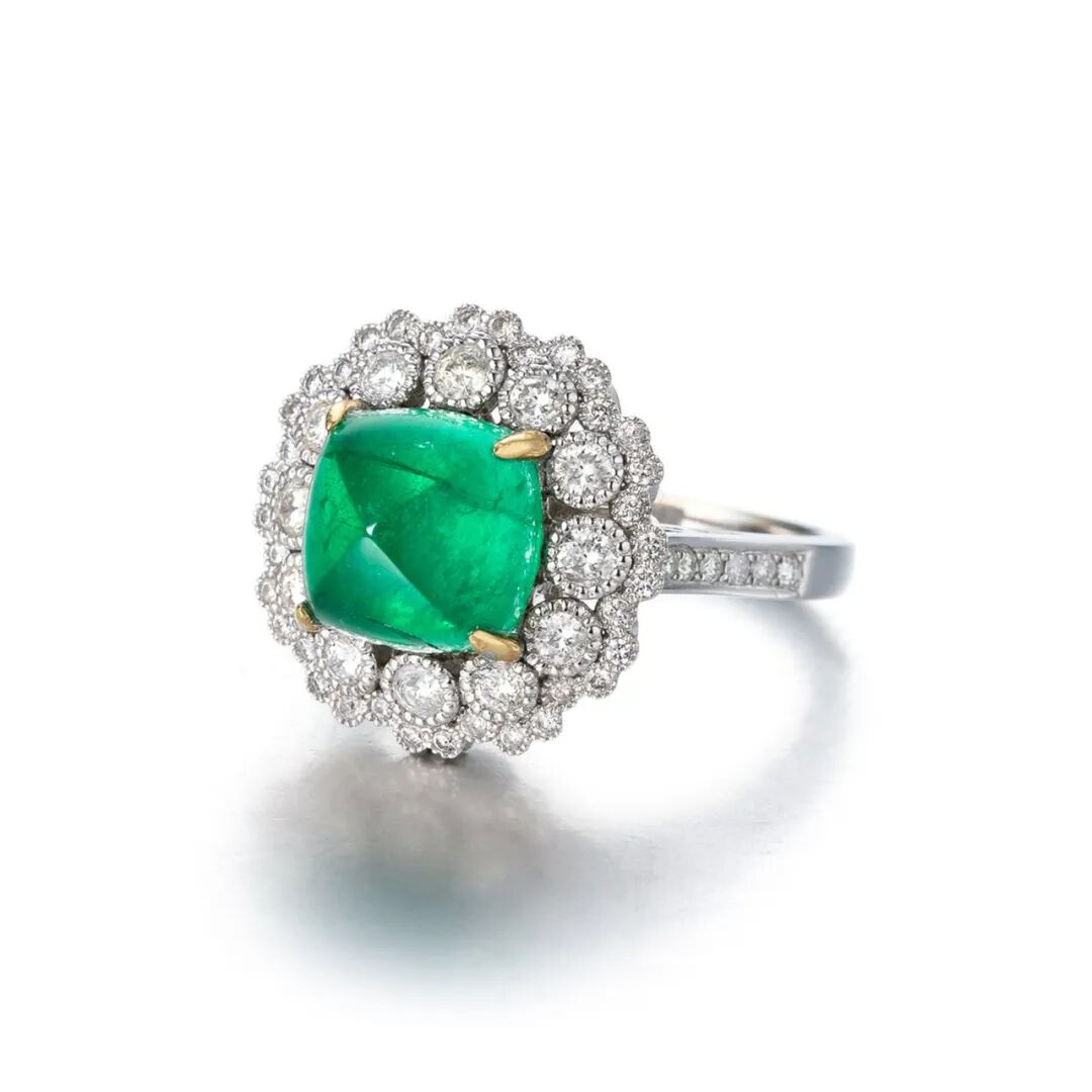 18k金镶祖母绿天然钻石戒指/吊坠两用款