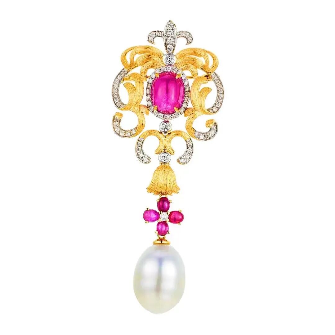 18K金镶天然红宝石巴洛克胸针/吊坠两用款