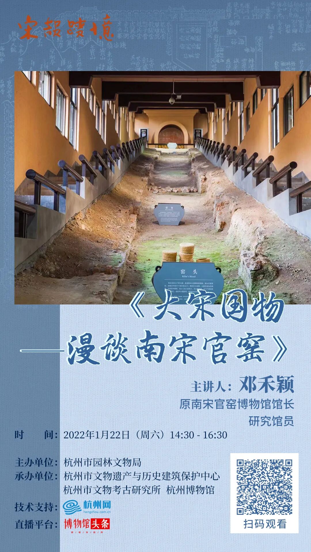明天(1月22日)下午14:30,原南宋官窑博物馆馆长邓禾颖将带来“杭州文博讲堂”第三讲《大宋国物——漫谈南宋官窑》。