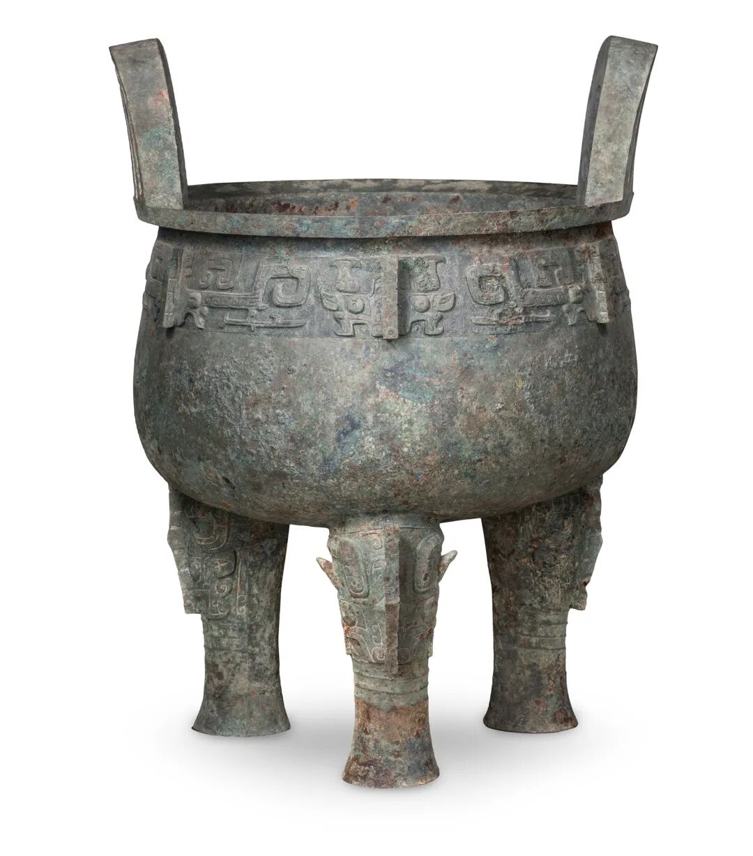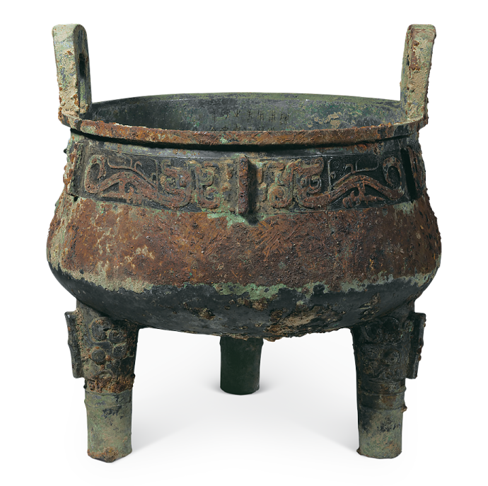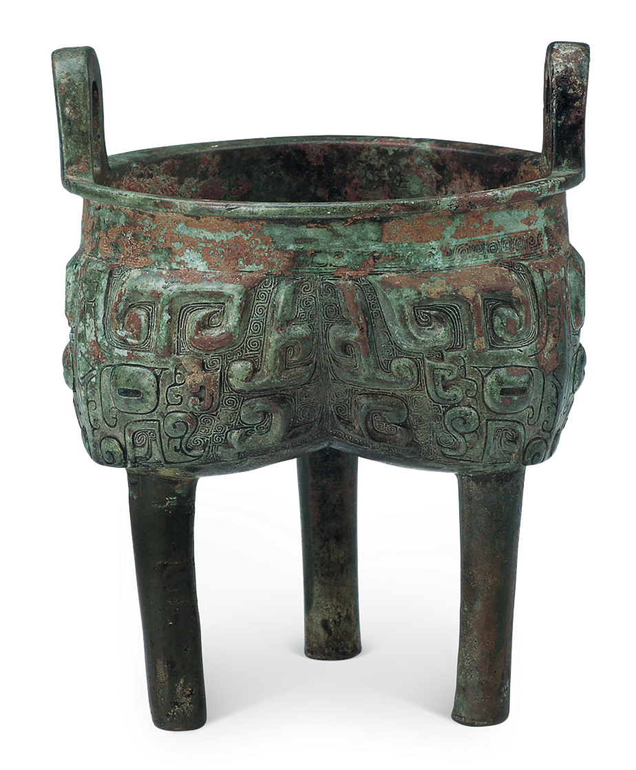 如果以拟人的视角观察分裆鼎,其足腹相连构成一个单元,两个单元间却并非如圆鼎一般连贯,而是形成一个有凹陷的“裆部”。这种鼎的腹部结构与青铜鬲相近,故也习称为“鬲鼎”,只因为足部并不中空,仍划归鼎一类。