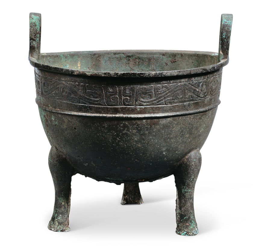 大盂鼎宏伟凝重,是西周早期大型青铜鼎的典型式样。鼎内壁铸有长篇铭文,共291字,记述了周康王二十三年九月册命一事。铭文中周康王向盂追述了文王、武王的立国经验与商人因沉湎于酒以致亡国的教训,告诫盂要效法其先祖,忠心辅佐王室,并对盂进行了赏赐。铭文追述商周变革的内容与《尚书酒诰》等传世文献相吻合,具有珍贵的文献价值。从书法角度来看,大盂鼎的铭文通篇布局规整,书风凝重。