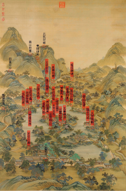 威廉·肯特,《有范布勒的望景楼和亭子的克莱芒特庄园》,钢笔手稿,1729 年—1731 年,大英博物馆藏这本书还细细挖掘了,园林营建的建造背后的科学支撑。园林,不仅是具有人文性的景观,还蕴含了大量科学学科:物理学、生态学、人体工程学、建筑学、心理学、视知觉……承德避暑山庄从选址、规划到施工处处体现着“格物致知”的儒家造园思想。康熙亲自勘察地貌,通过科学的测量后,又充分考虑天然植被与生态的平衡,提出利用原地形“庄田勿动树勿发”的规划湖堤、筑堤栽树的原则,这是他将科学精神和生态观融入了造园前期的规划中。考虑到水利和造景的需要,乾隆在原来水闸的位置上建“水心榭”,出水闸墩成八孔,夹水横陈,水光倒影,“上头轩榭水中图”。湖区的水顺走势过水心榭流出山庄外,又回到庄外的武烈河之中。山庄理水尊重水脉走势,合理控制水流、梳理水系的做法充分考虑自然生态水系与造景之间的融合,因地制宜,“精而合宜”。《康熙二十四水景题名图》, 根据故宫博物院藏冷枚《避暑山庄图》改绘关于庭园能够降温的原因,涉及冷空气沉降原理。罗伯特·布朗在《设计结合微气候》[Design with Microclimate][26](2010)一书中指出:当空气被实体围墙所围合,可以形成不同于外界气候环境的孤立区域,冷空气会在庭园中沉降并分层,这时的庭园就如同装满冷空气的水池。有限的园林面积,难以将山水完全置入其中。于是明末清初造园大师张南垣通过以围墙、竹林等在后部遮挡的方式,让人产生还有大山在后绵延的错觉,充分调动人的联想,从而让人感受真山境界。他用“以少胜多”的手法而达到“境生象外”的画意效果、获得“园在山中”的山水体验,从而出色地实现了中国文化中的山水栖居理想。何晓静【主编】