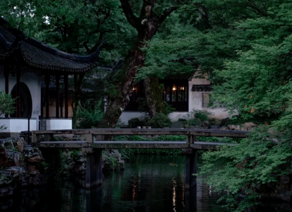 园林,就像一个折中的答案,它置身滚滚红尘,却以其独特的营造,为你隔开喧嚣纷扰。仿佛千百年来人们“隐居”思想与“入世”现实的妥协,为疲惫的一天的人,构筑起一方心灵休憩的港湾。园林,寄寓着人类诗意中栖居的理想,与崇尚自然的生活境界。