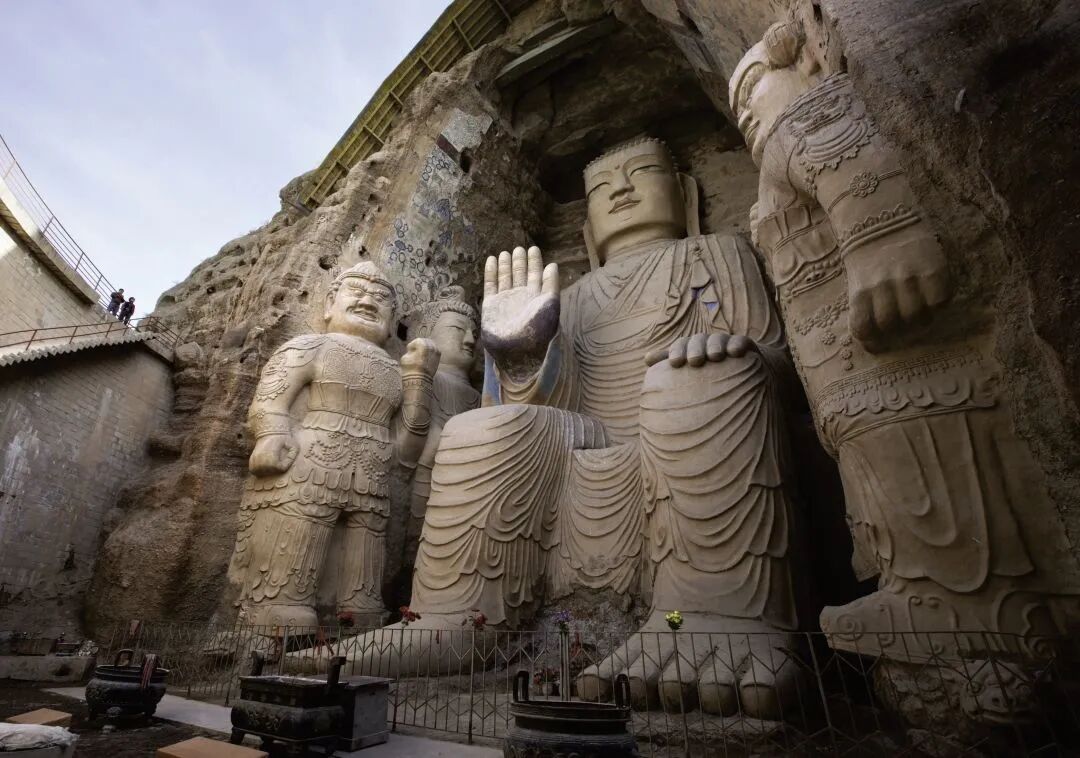 麦积山石窟开凿于悬崖峭壁之上,窟龛之间以凌空飞架的栈道相连,上下多达14层,蔚为壮观。因其栩栩如生的泥塑造像,被誉为“东方雕塑陈列馆”。