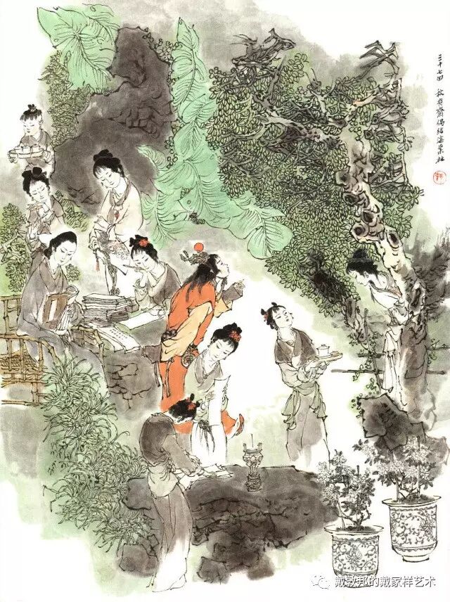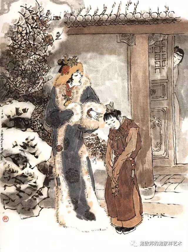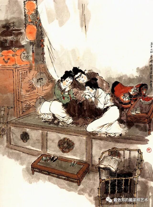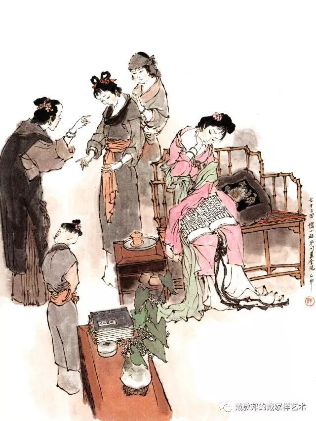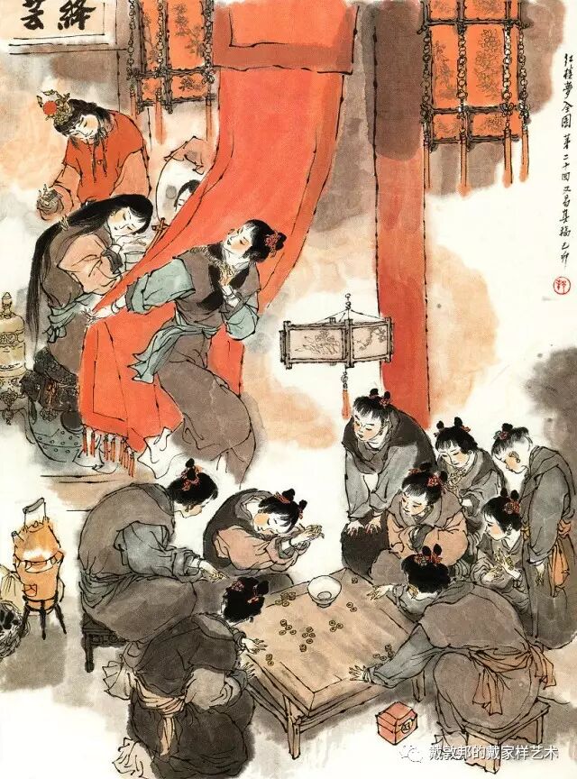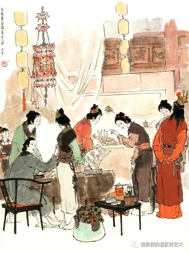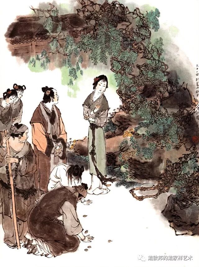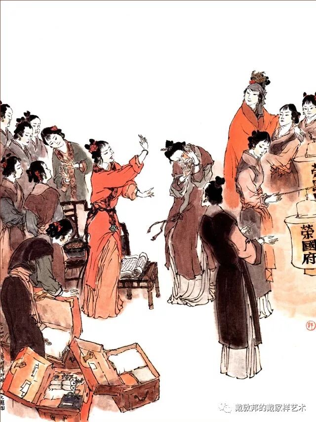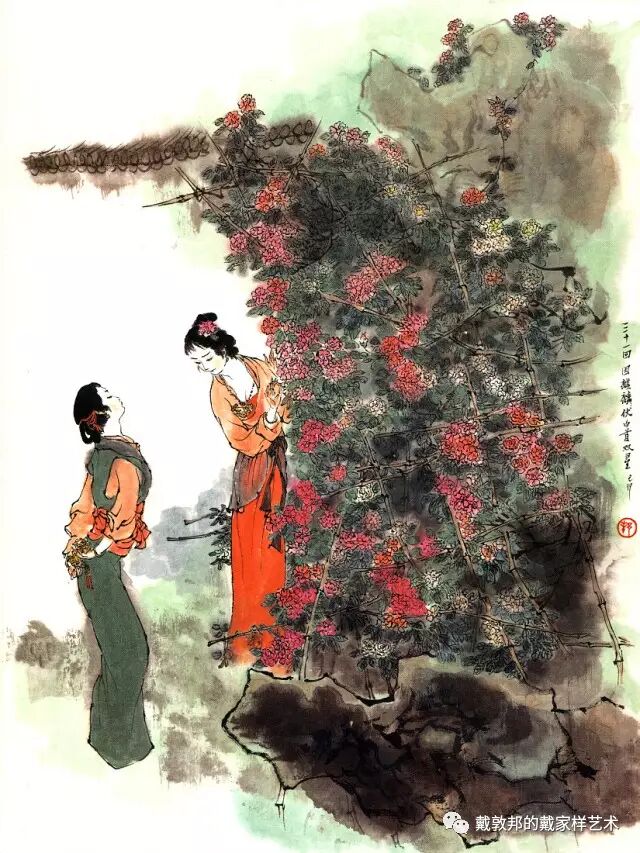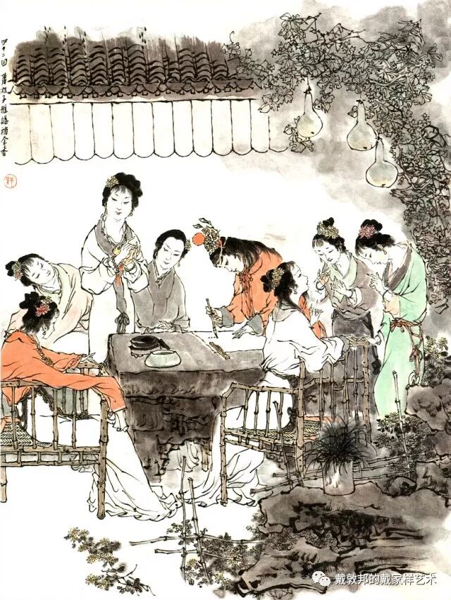 李纨守寡不送宫花,后有绕过李纨住处均系上下密缝,故画红楼梦务必注意细节。黛玉之小心眼始见。宝玉秦钟二人均冠冕堂皇所谓读书者其实不在书矣!正是私情美事惹出日后大闹书塾。贾珍与可卿有染被焦大戳穿,口塞马粪乃家丑内传亦不可。