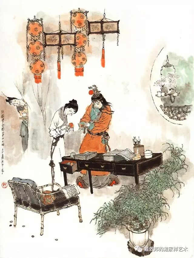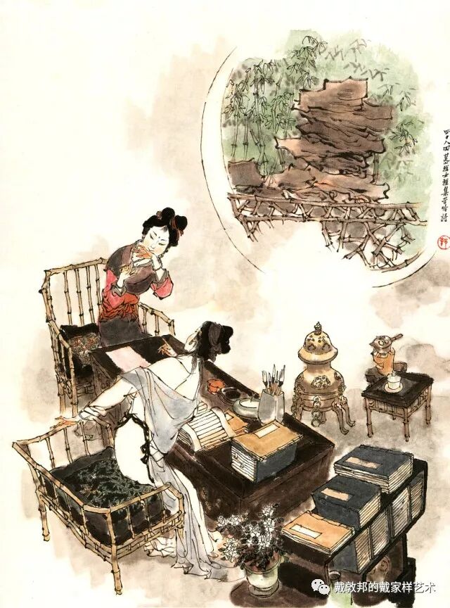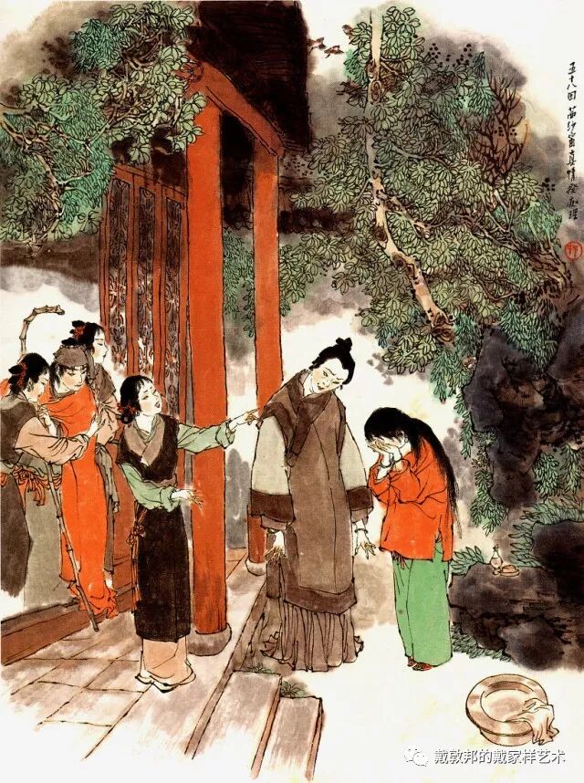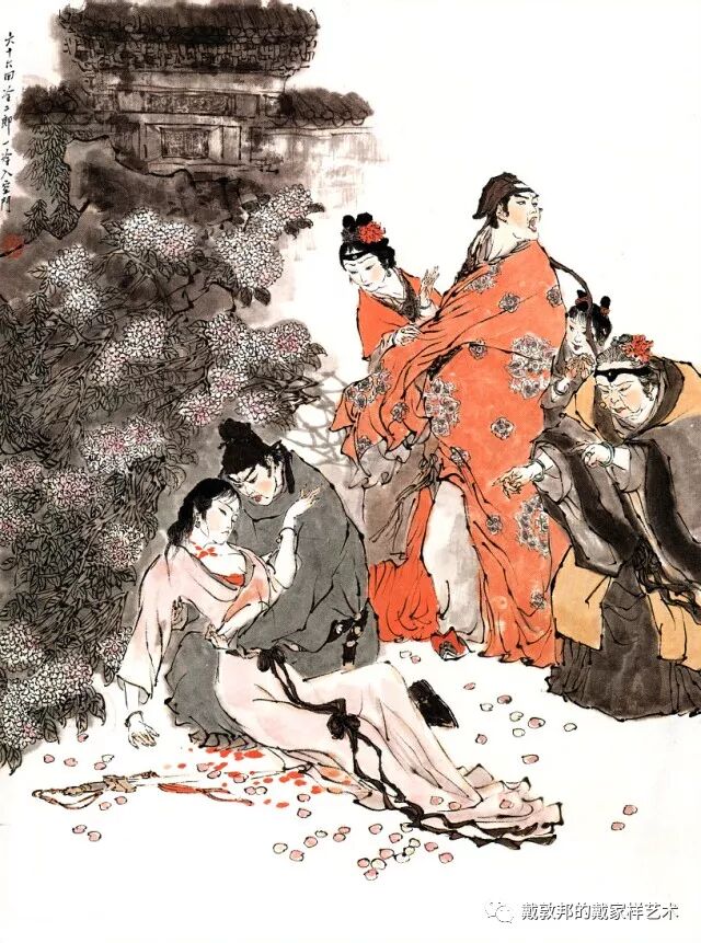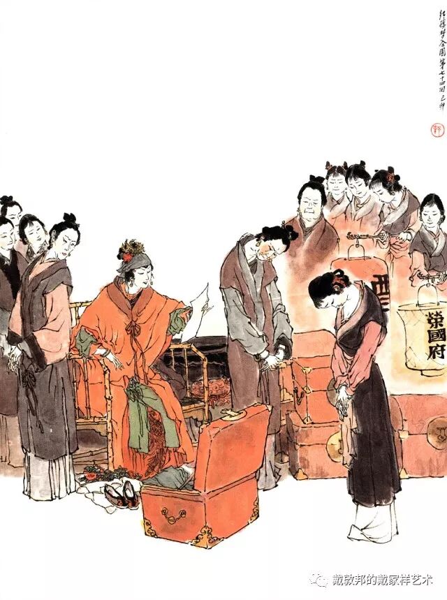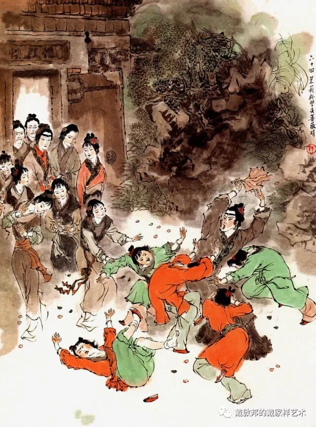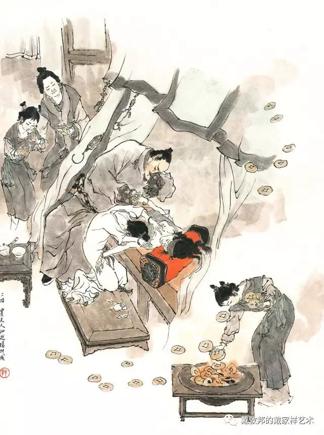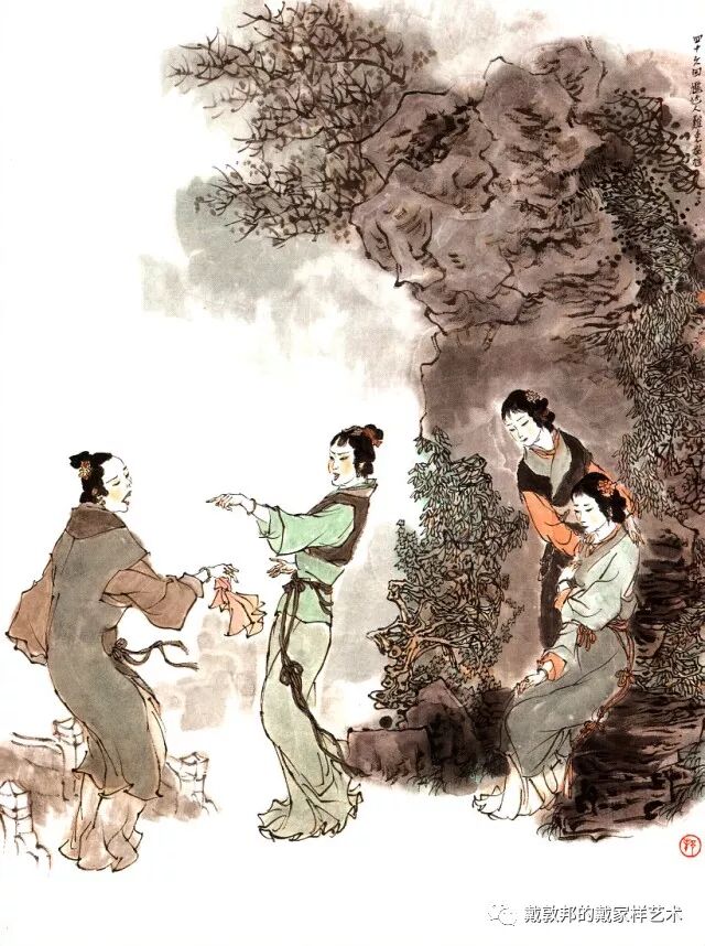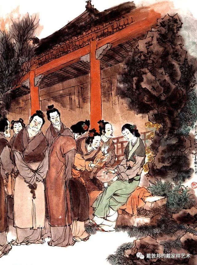 李纨守寡不送宫花,后有绕过李纨住处均系上下密缝,故画红楼梦务必注意细节。黛玉之小心眼始见。宝玉秦钟二人均冠冕堂皇所谓读书者其实不在书矣!正是私情美事惹出日后大闹书塾。贾珍与可卿有染被焦大戳穿,口塞马粪乃家丑内传亦不可。