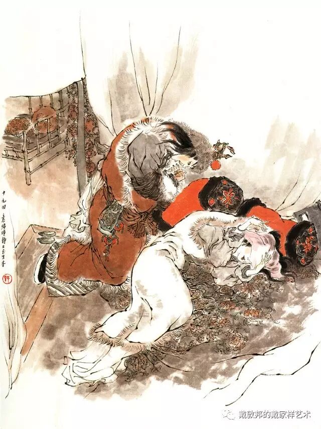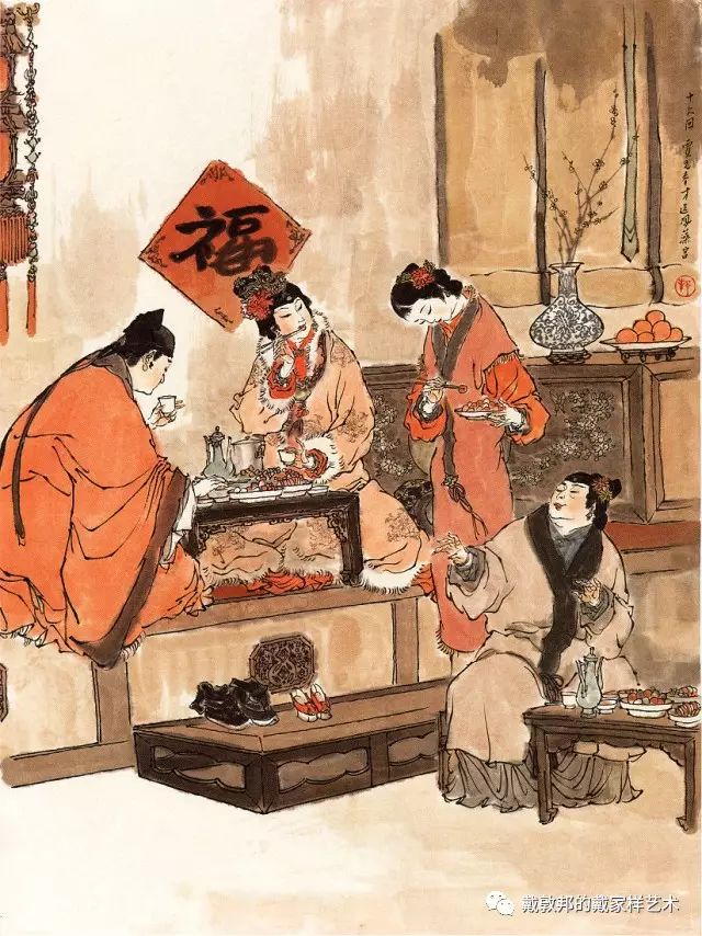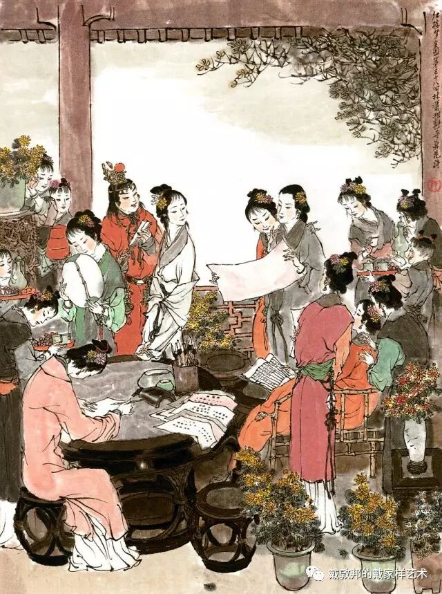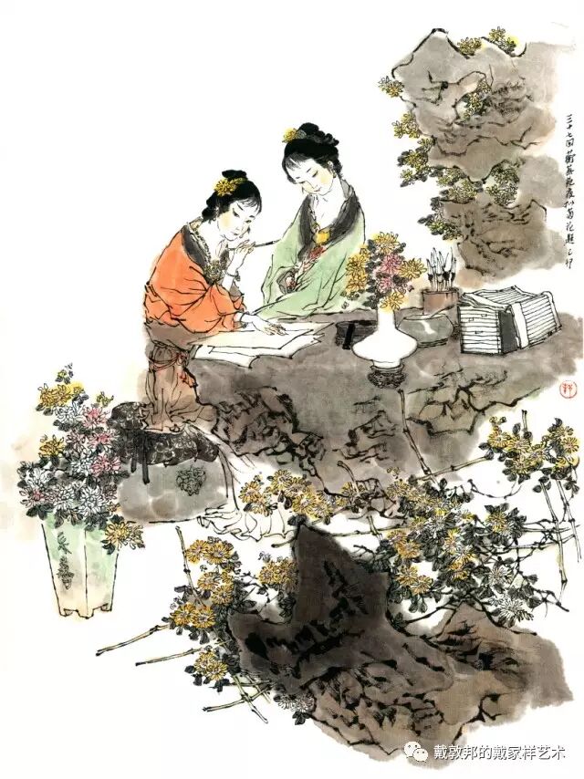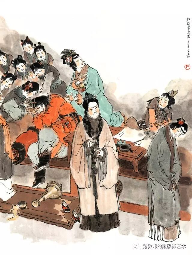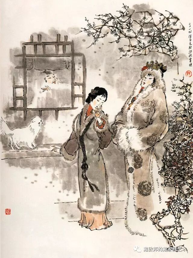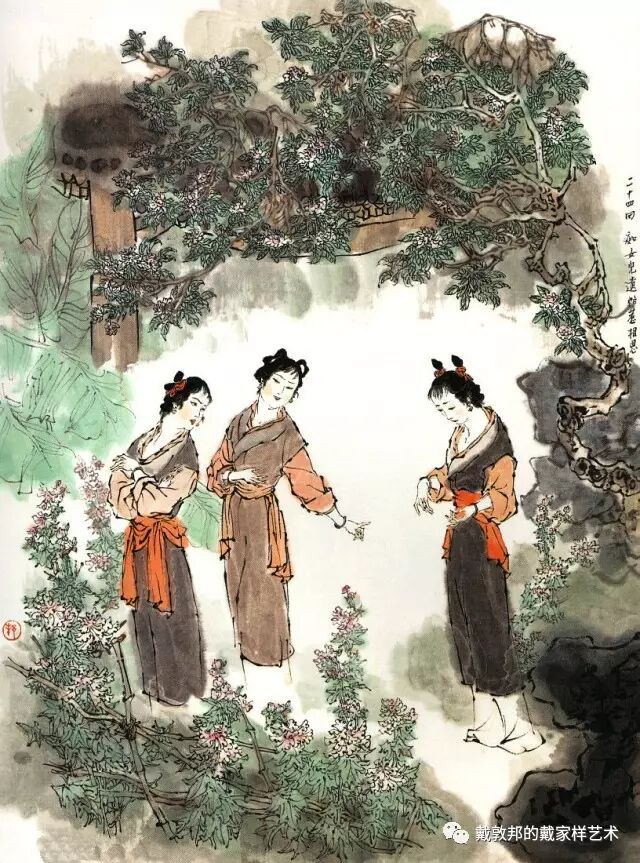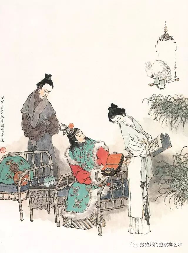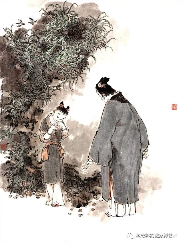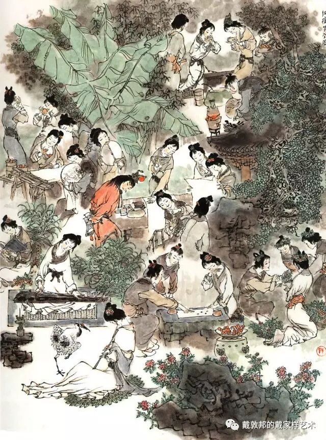 李纨守寡不送宫花,后有绕过李纨住处均系上下密缝,故画红楼梦务必注意细节。黛玉之小心眼始见。宝玉秦钟二人均冠冕堂皇所谓读书者其实不在书矣!正是私情美事惹出日后大闹书塾。贾珍与可卿有染被焦大戳穿,口塞马粪乃家丑内传亦不可。
