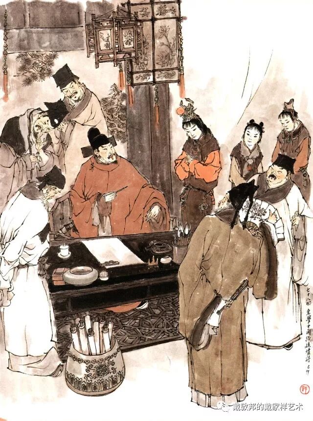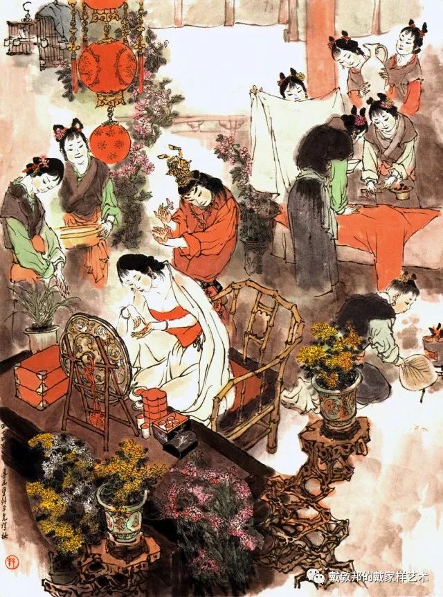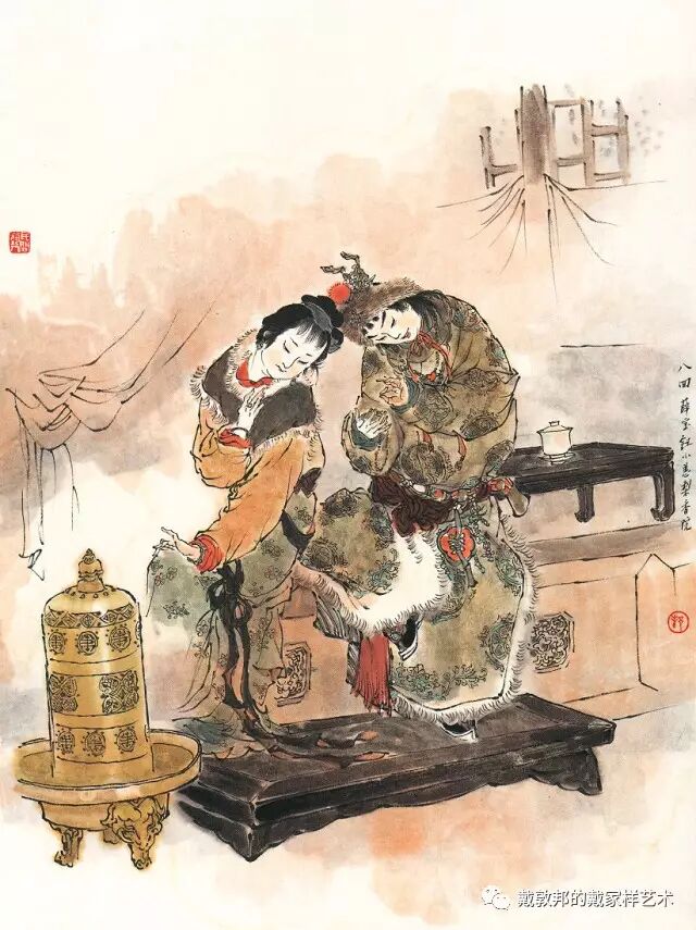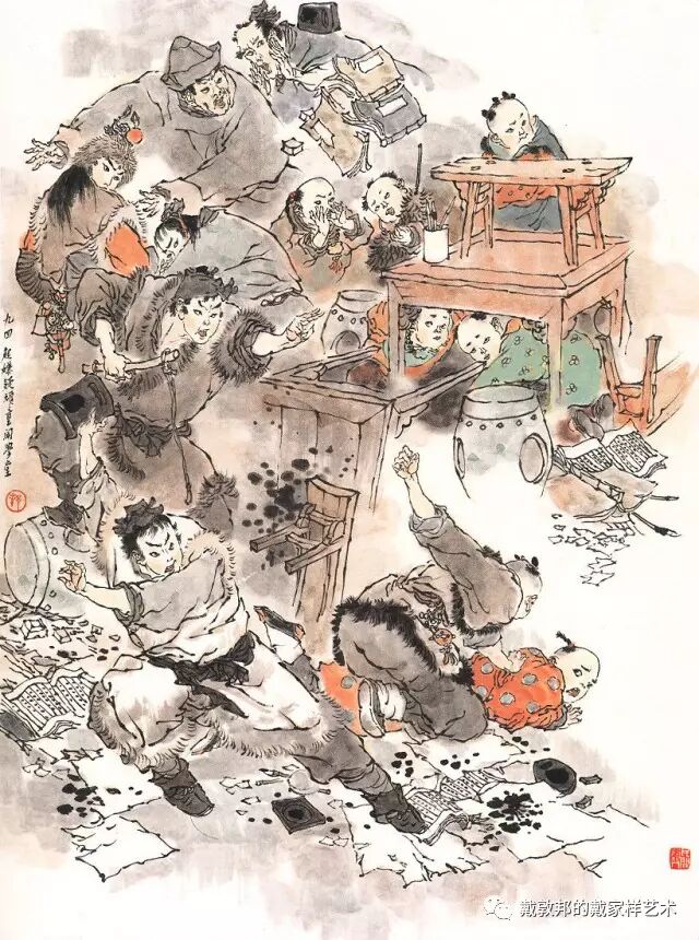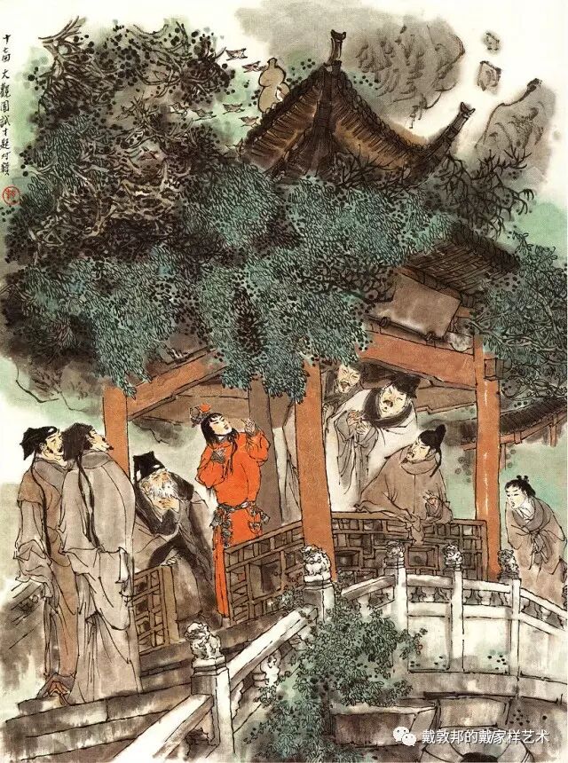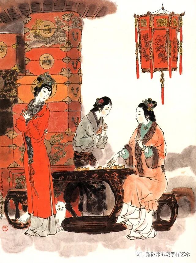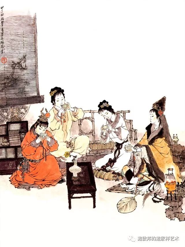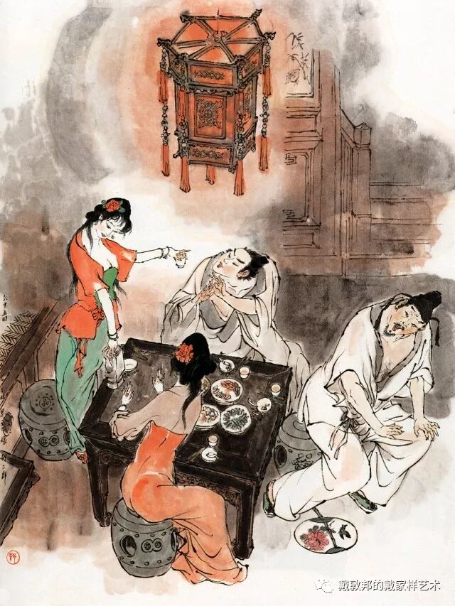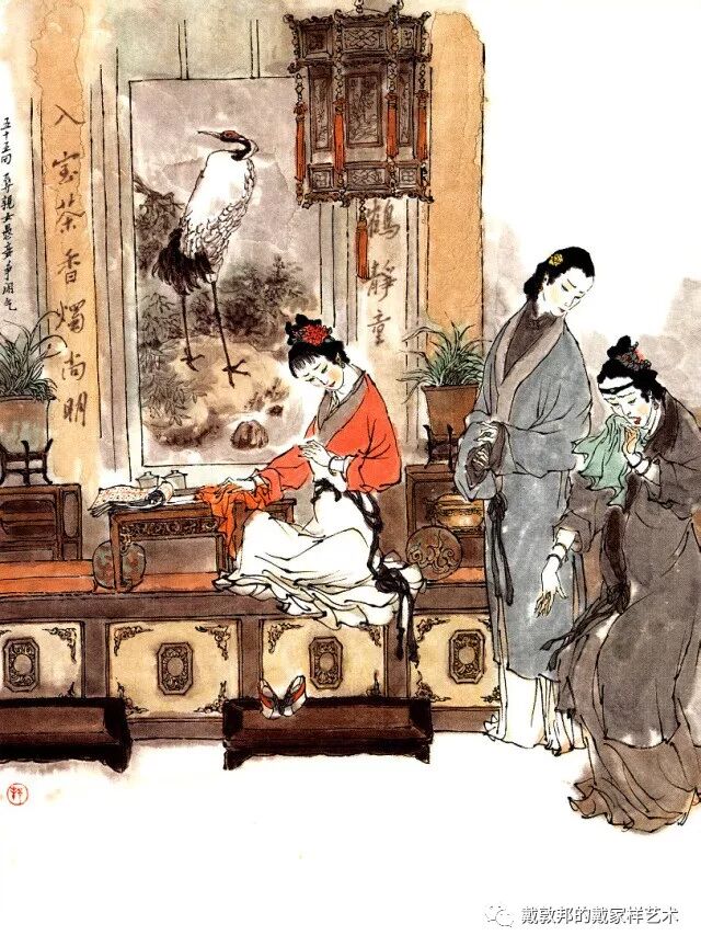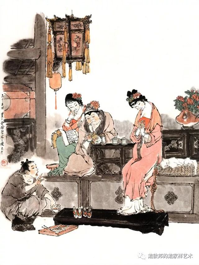 李纨守寡不送宫花,后有绕过李纨住处均系上下密缝,故画红楼梦务必注意细节。黛玉之小心眼始见。宝玉秦钟二人均冠冕堂皇所谓读书者其实不在书矣!正是私情美事惹出日后大闹书塾。贾珍与可卿有染被焦大戳穿,口塞马粪乃家丑内传亦不可。