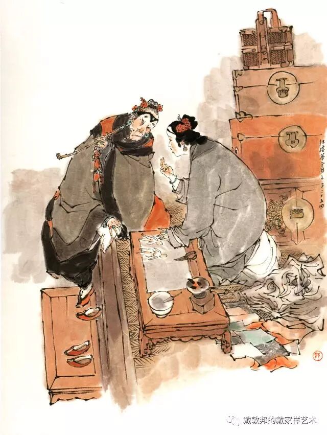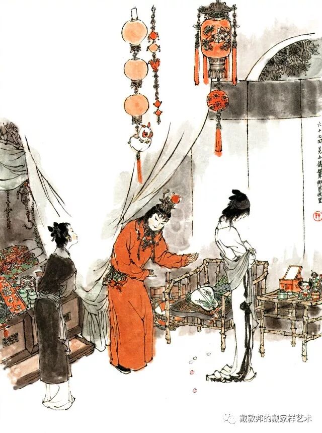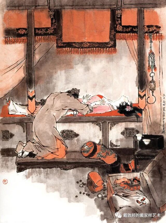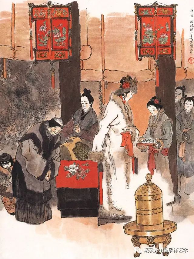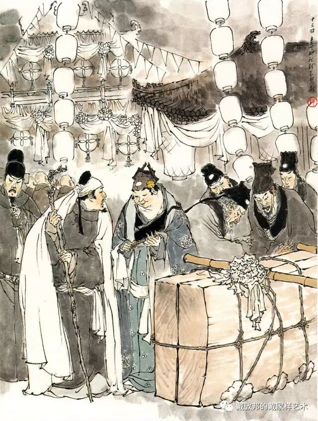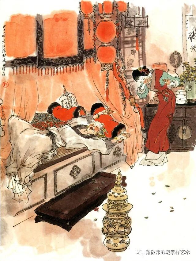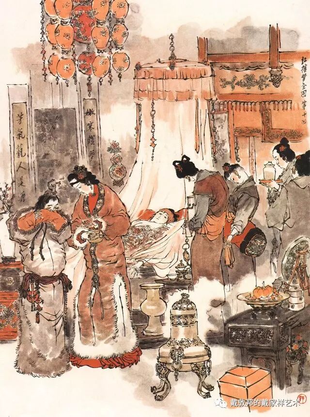 熙凤与可卿过往丛密有同病相怜之感,说及每日服用人参一节,后文荣府衰败连散人参都找不出。又秦可卿的后事均已料理,唯棺木未就留有后回薛蟠送来之无价上好棺材,这种不经意处淡淡带出与后文的丝丝入扣的关联,虽属文学小说上的手法,但为其配图者亦需注意连贯和喻意。