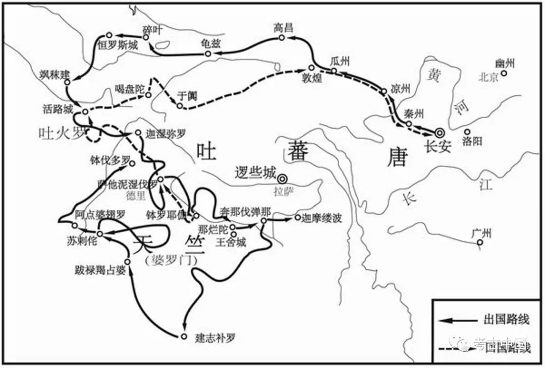 大唐贞观元年(公元627年)28岁的玄奘法师从长安出发,沿丝绸之路西行取经,过秦州、兰州,潜入河西,经停凉州、瓜州等地,最终从玉门关出境,历经千难万险,两年后到达印度。贞观十七年(643年)玄奘正式东归,经丝绸之路南道的于阗、楼兰等地抵达敦煌,于贞观十九年(645年)春正月回到长安。